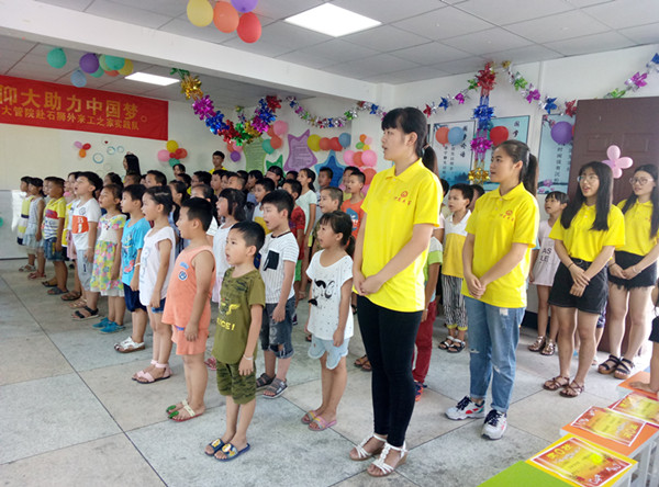 7月22日下午,ac米兰官方网站赴石狮暑期社会实践队联合石狮市公安局蚶江派出所青少年社会教育中心在洪窟警务室外来工之家举行“献计谋发展,助力中国梦”主题文艺汇演。