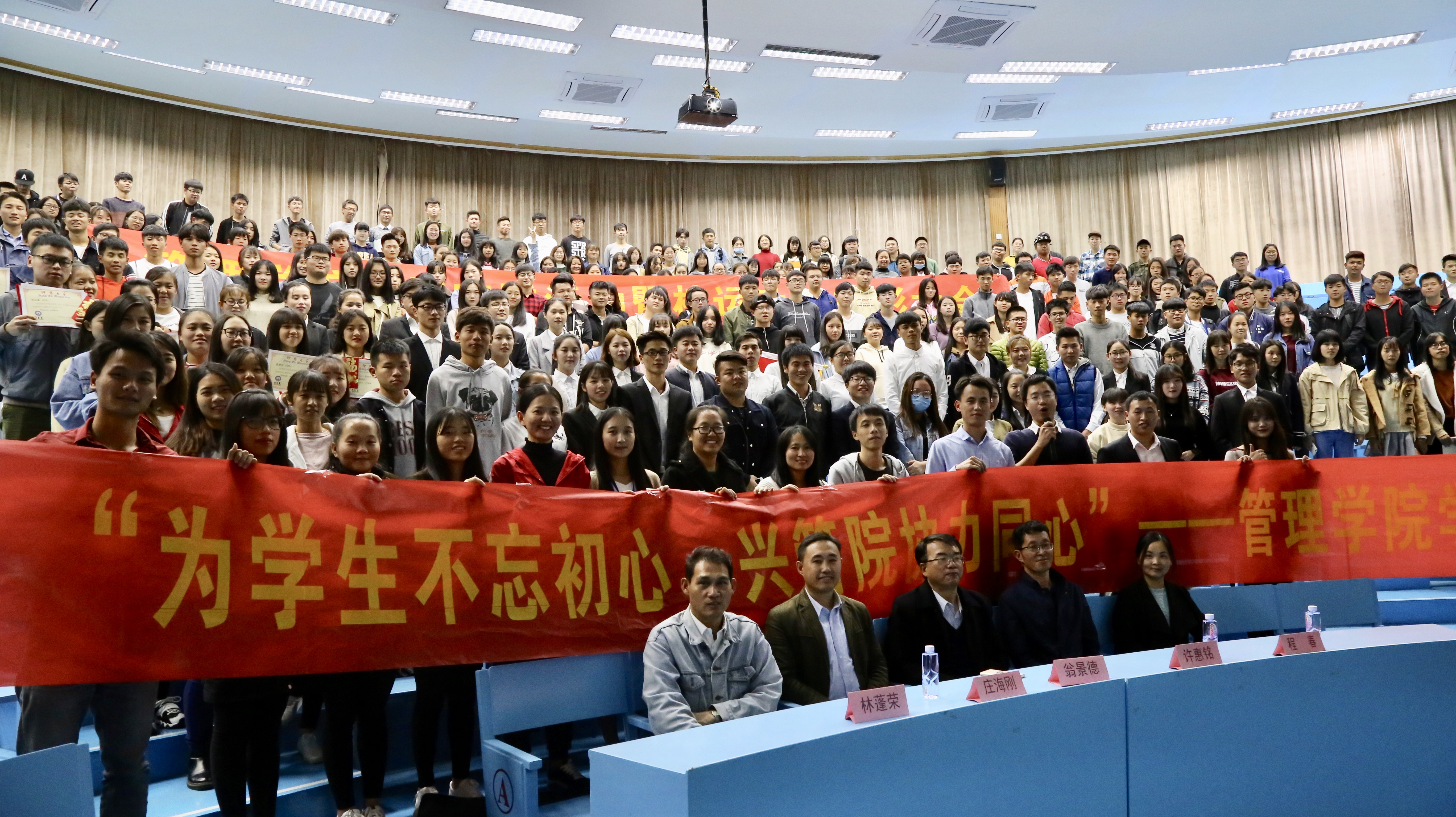 (ac米兰官方网站师生合影留念) 最后许惠铭常务副院长对本次大会做总结报告,号召我院全体师生团结一心,牢记使命,为振兴管院而不懈努力。(王佳黎/图文)