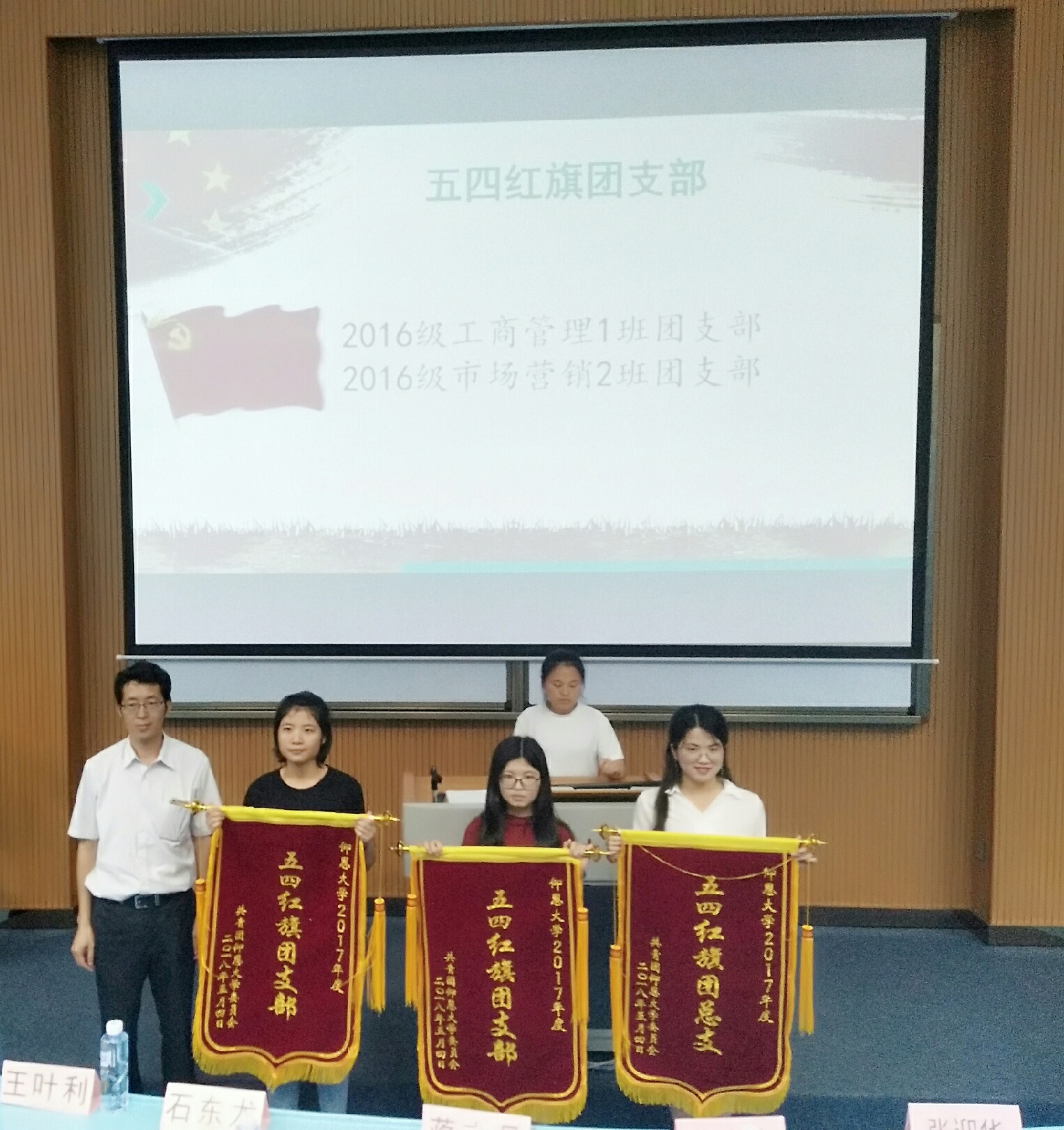 为总结表彰一学年以来我院共青团工作所取得的成绩,5月17日晚,在ac米兰官方网站第一教学区和昌楼求是讲堂举行“ac米兰官方网站五四表彰大会暨2018年暑期实践动员大会”。ac米兰官方网站党总支书记兼常务副院长许惠铭,工商管理系蒋志丹老师等各系老师、辅导员及ac米兰官方网站17级学生参加此次大会。