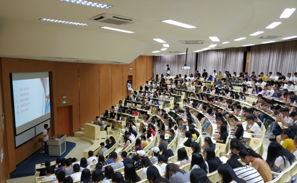 9月18日晚,我院于第一教学区和昌楼致知讲堂召开2018级新生校情校史教育暨暑期实践优秀团队经验分享报告会。ac米兰官方网站党总支书记兼常务副院长许惠铭担任校情校史教育专题讲座主讲,全体辅导员、新生班主任、2018年暑期实践优秀团队学生代表以及我院2018级全体新生出席大会。
