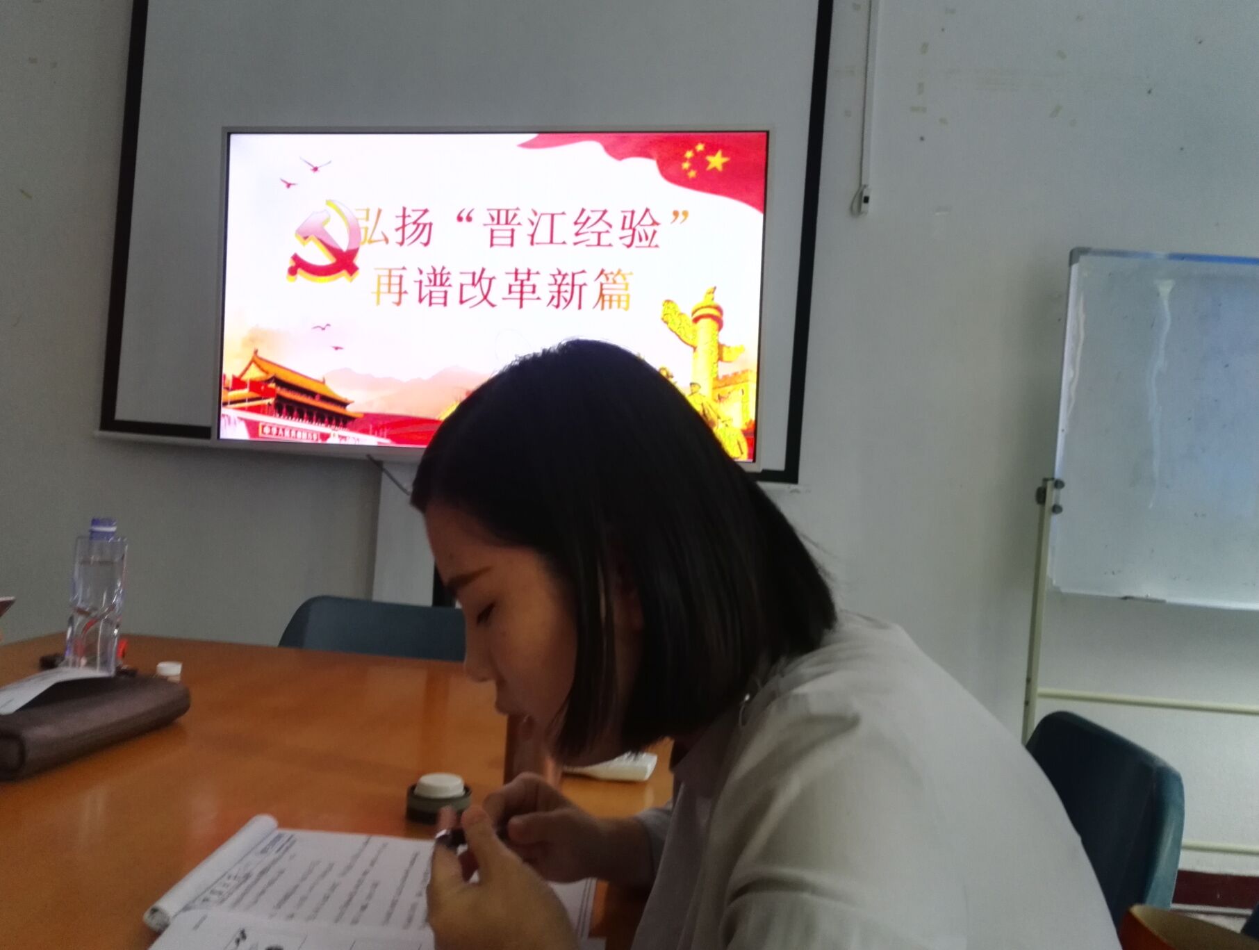 李淑娟同志作分享 最后,李淑娟同志为支部成员分享了《弘扬“晋江经验”,再谱改革新篇》的心得体会,号召支部成员“敢为天下先,爱拼才会赢”。(ac米兰官方网站教工党支部/图文)