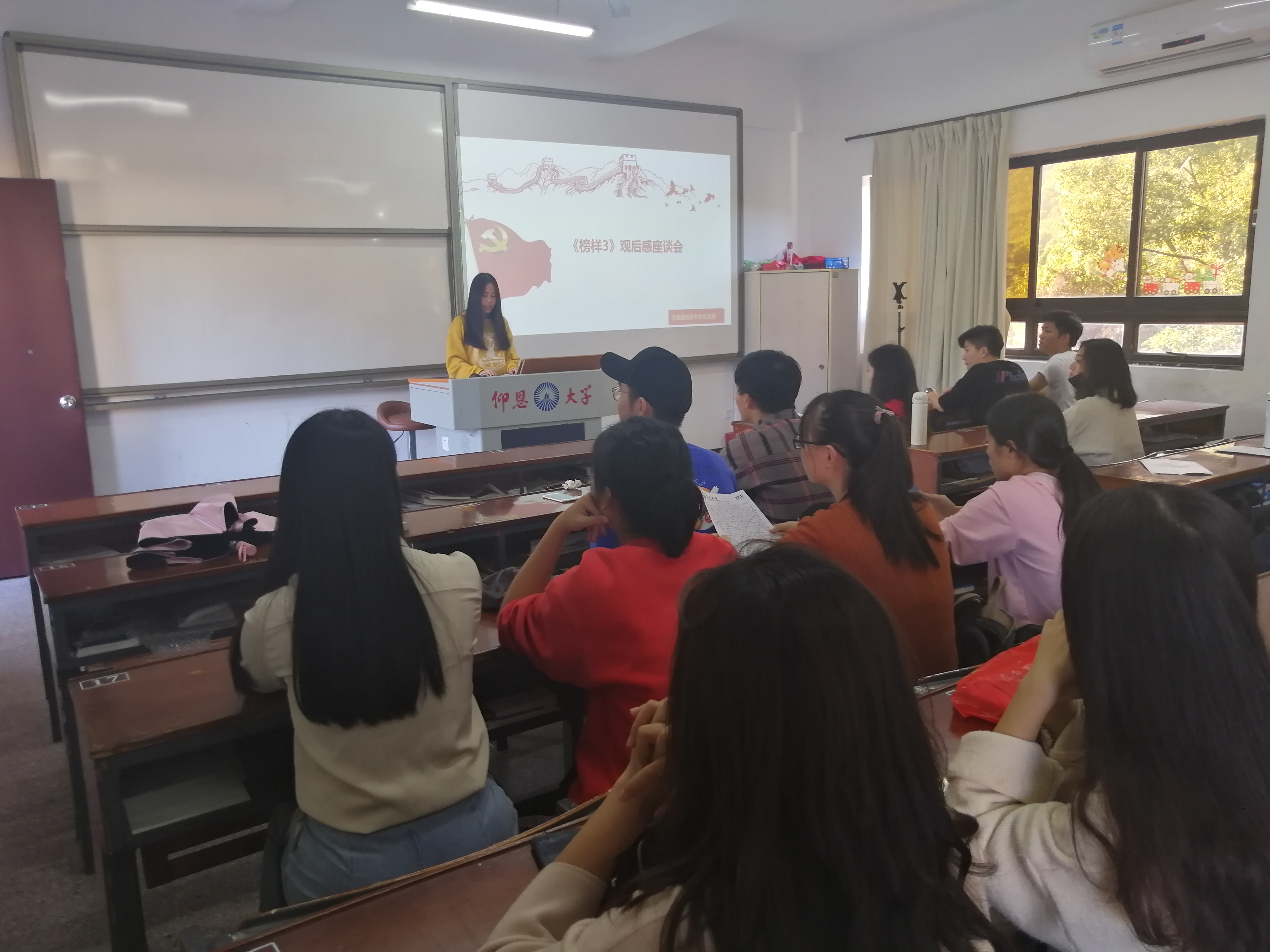 赵静琳同志正在分享观后感 最后,市场营销系学生党支部书记连景霞对此次座谈会进行总结,她希望学生党员要不忘初心,牢记使命,以榜样为灯塔,以先锋为标杆,用实际行动为人民干实事!(吴益敏/文 林锦怡/图)