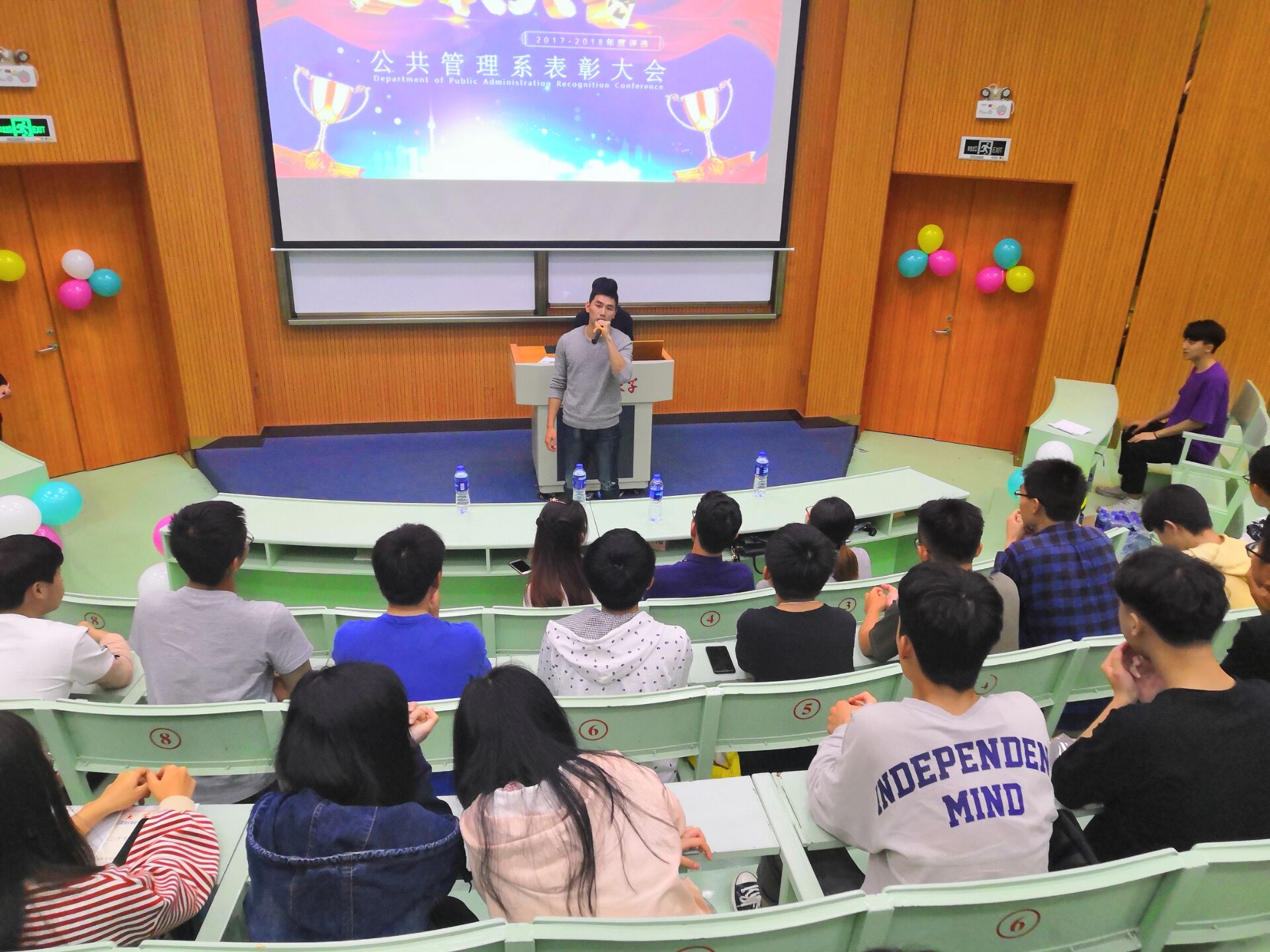 12月4日晚上,公共管理系在第一教学区和昌教学楼乐之讲堂举行系表彰大会。ac米兰官方网站党总支书记兼常务副院长许惠铭、公共管理系主任刘清、2018级工业工程1班班主任邹金串、公共管理系辅导员徐鸿飞等应邀出席大会并担任颁奖嘉宾。