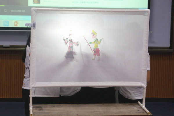 皮影戏展示 团日活动大赛自9月开赛以来,经历了团支部活动、初赛、复赛等环节,已历时三个月。经过院系团组织层层选拔,共有11个团支部晋级决赛。在展示环节中,各团支部紧扣活动主题,充分发挥了集体智慧的力量,以沙画、皮影戏、情景剧、小话剧、歌曲、朗诵、舞蹈等形式,结合PPT和视频讲解,展示了丰富多彩的团日活动成果。