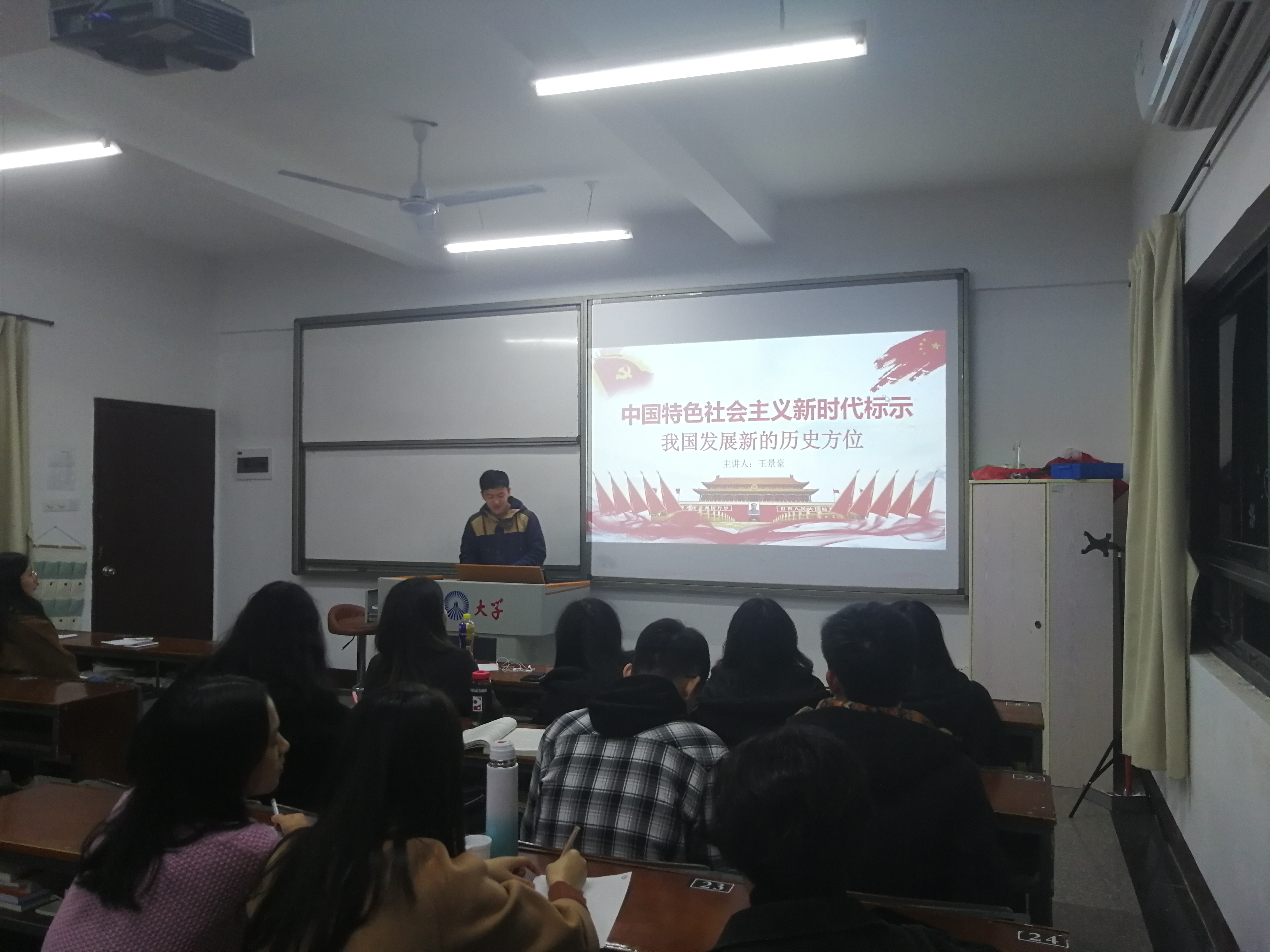 1月3日下午,市场营销系学生党支部在共和楼411开展《中国特色社会主义新时代标示我国发展新的历史方位》专题党课学习活动。市场营销系学生党支部全体党员到场参加学习。