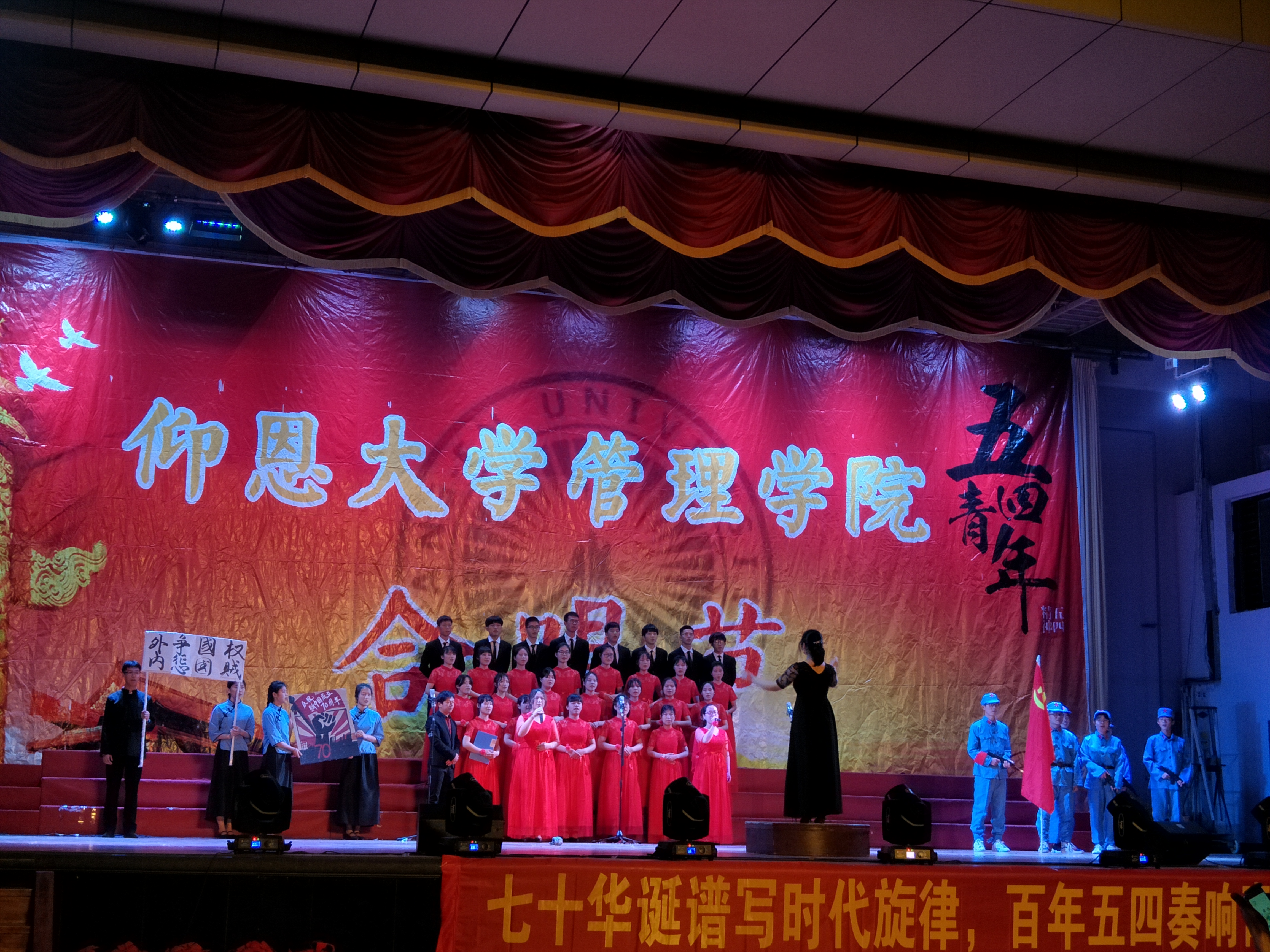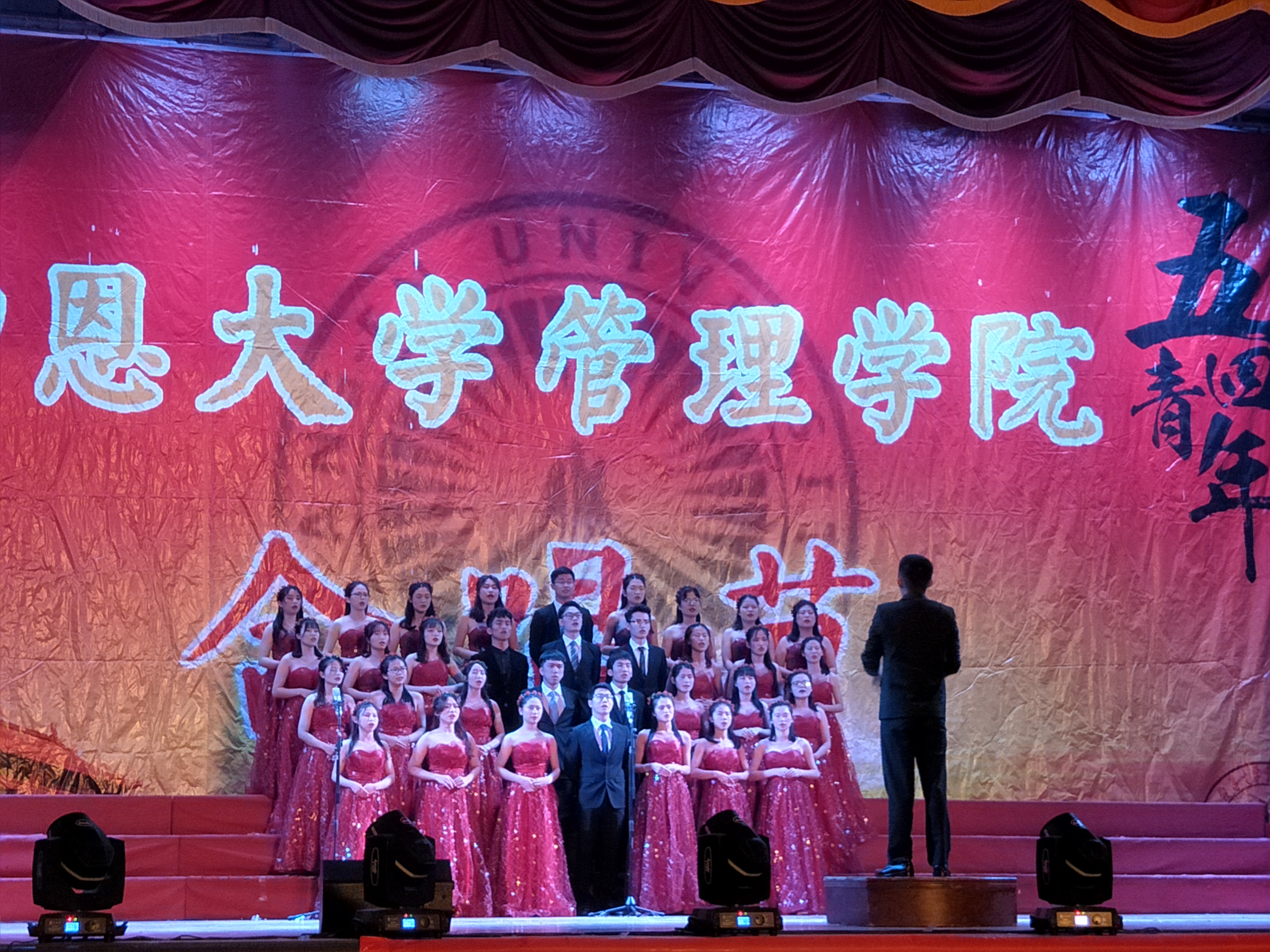 部分班级比赛照片 学院初赛首场比赛一共有11支队伍参加,每只参赛队伍的表现都精彩绝伦,整个普照大礼堂热潮涌动。参赛同学们着装整齐、干净整洁,神情从容自信,歌声和谐悠扬。他们纵情高歌,唱响专属青春的梦想与旋律。