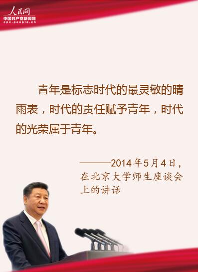 ——《在同各界优秀青年代表座谈时的讲话》(2013年5月4日),《十八大以来重要文献选编》(上),中央文献出版社2014年版,第277页