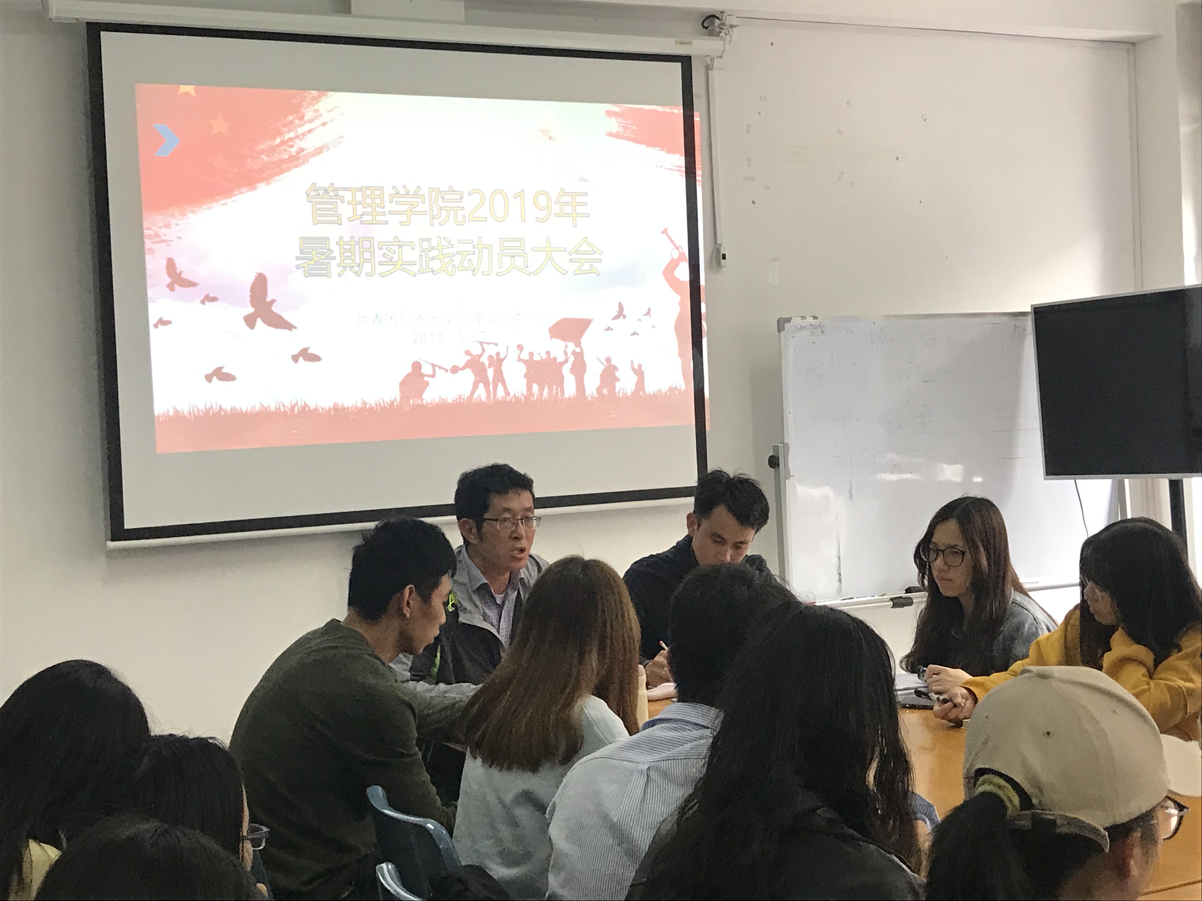 5月7日下午,我院团委在第一教学区曼谷楼206召开2019年暑期实践动员大会,我院党总支书记兼常务副院长许惠铭、院团委书记杜结实以及各系辅导员和各实践队负责人到场参加。