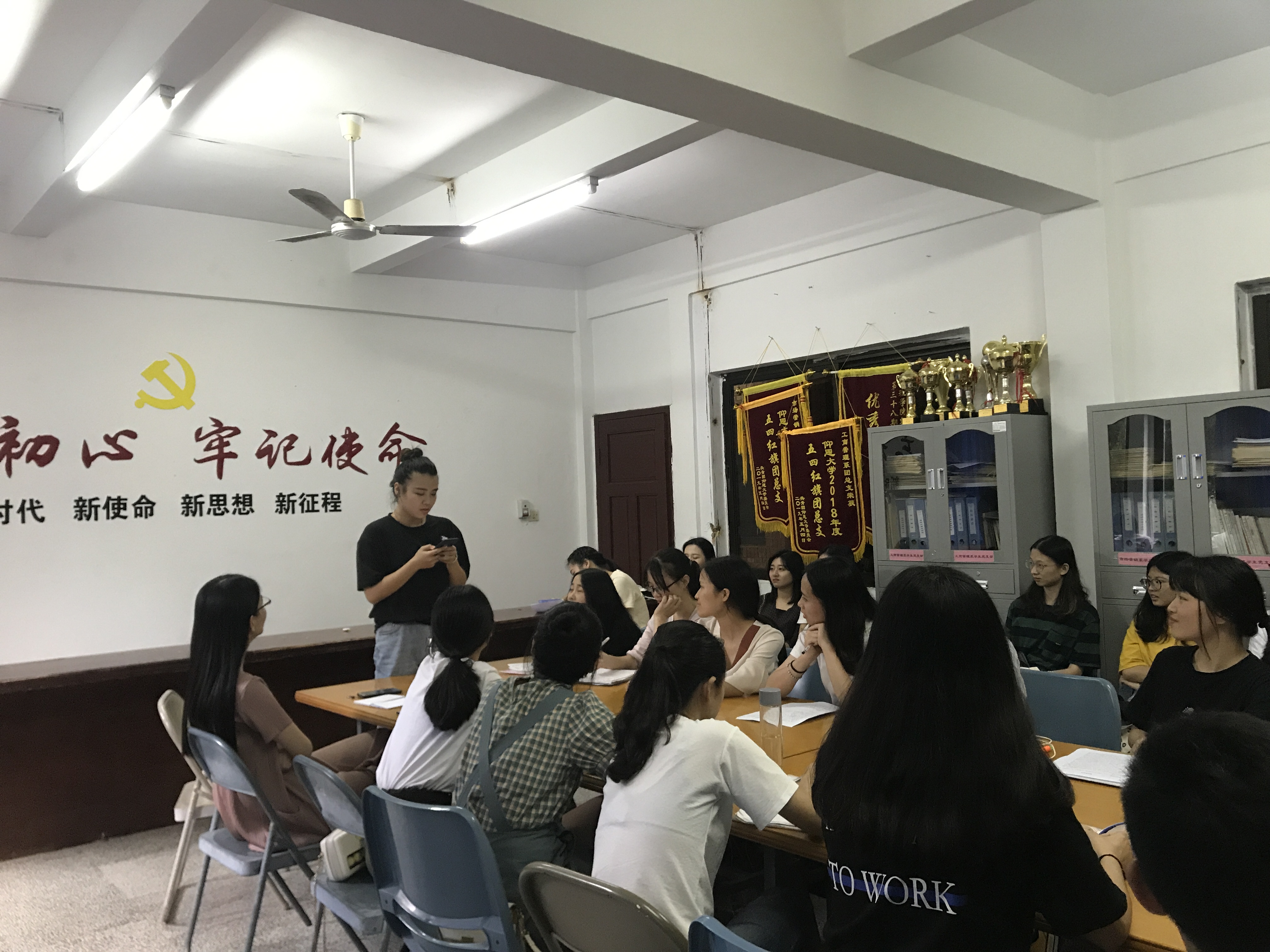 6月17日下午,市场营销系学生党支部于曼谷楼202开展2019届毕业班党员交流大会。参加本次大会的有市场营销系学生党支部书记连景霞老师、辅导员李育瑜老师、市场营销系学生党支部的全体党员,交流会由李陈蕊同志主持。