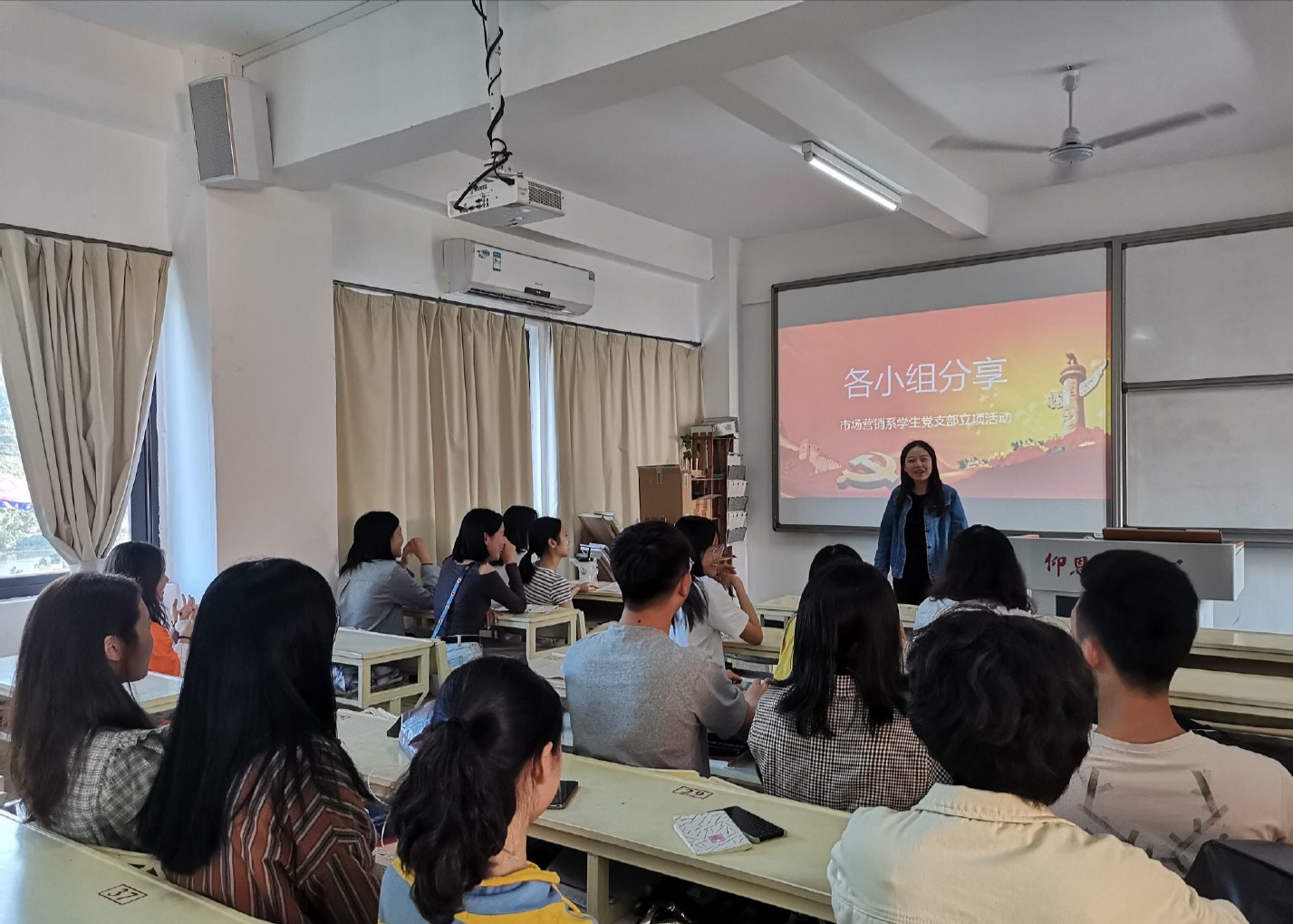 10月17日下午,市场营销系学生党支部于吉龙楼304开展了“舞动中国”活动总结分享会。参加本次活动的有市场营销系学生党支部全体党员,活动由陈小丹同志主持。
