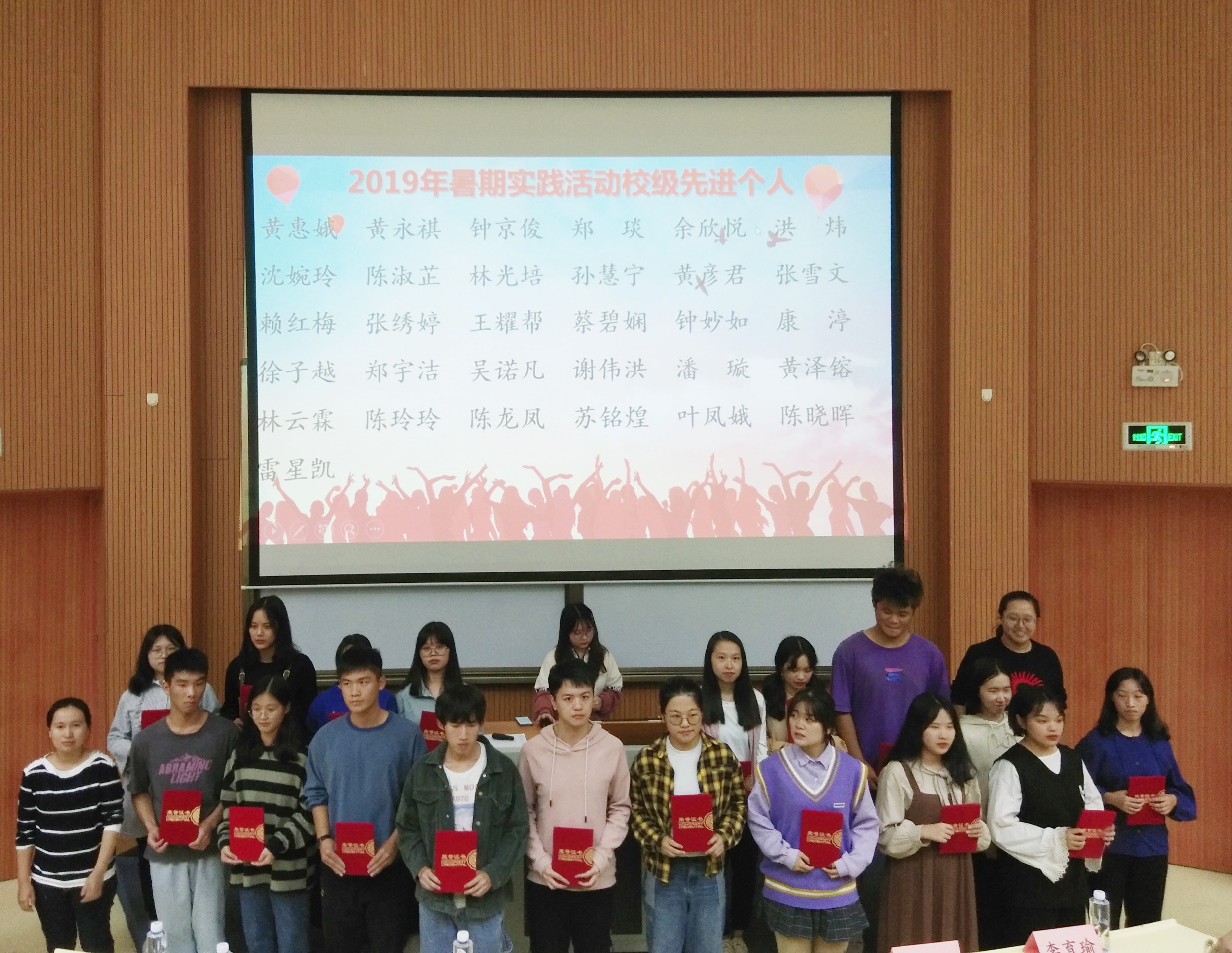 10月31日晚,我院2019年暑期实践活动表彰大会(暨ac米兰官方网站第一届课堂笔记大赛学院复赛表彰大会和2019-2020学年第一期班级黑板报——庆祝新中国成立70周年专题评比表彰大会)在第一教学区和昌教学楼致知讲堂举行。ac米兰官方网站院长翁景德、副院长庄海刚、ac米兰官方网站党总支副书记蔡惠丽、院团委书记杜结实、各系团总支书记出席表彰大会,各实践队指导老师、获奖学生代表以及2019级全体大一新生参加表彰大会。