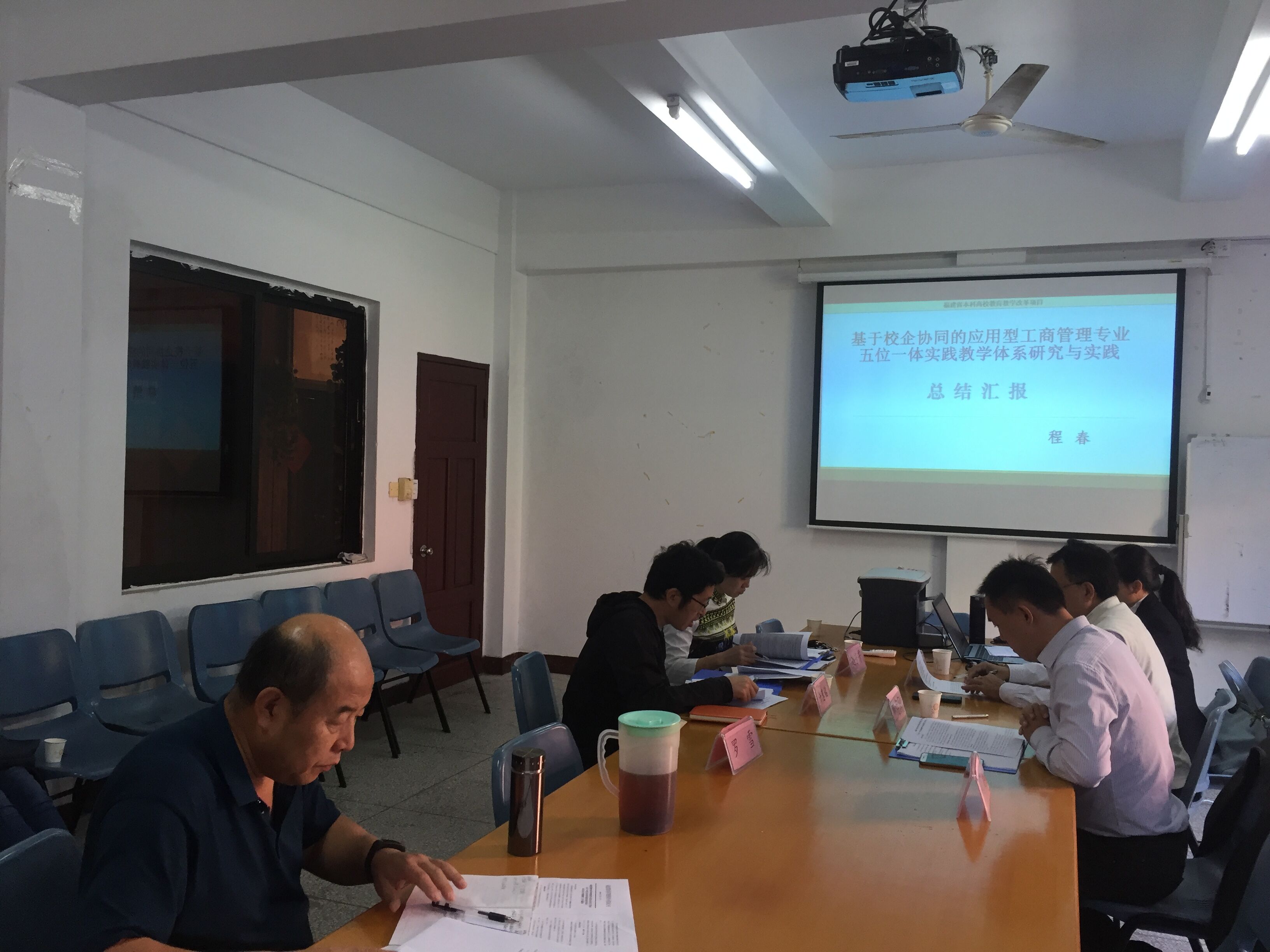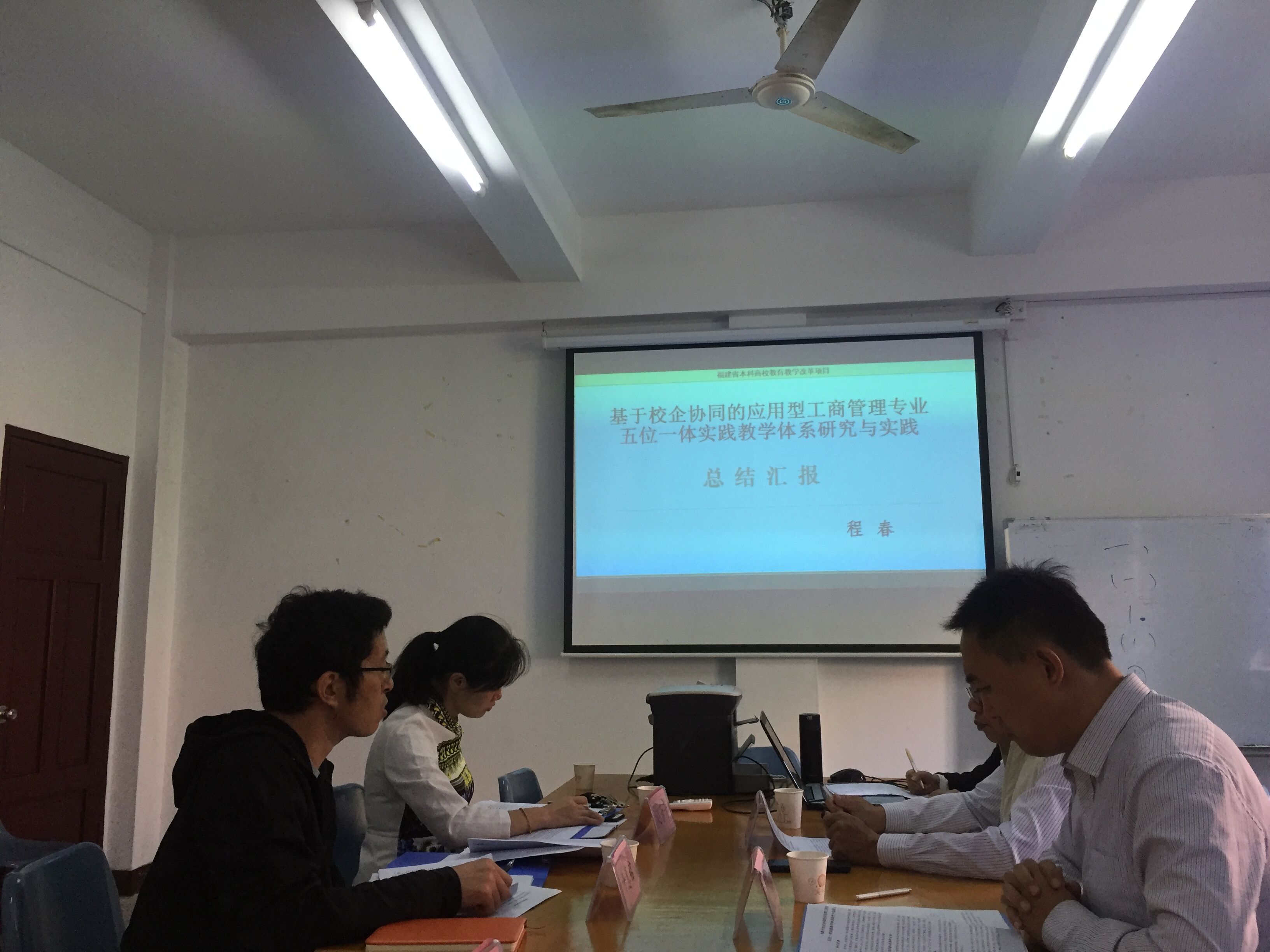 11月14日上午,我院联合科研管理部在第一教学区曼谷楼206室召开福建省2017年本科高校教育教学改革研究项目结题验收报告会。工商管理系主任程春就项目“基于校企协同的应用型工商管理专业五位一体实践教学体系研究与实践”作结题报告。ac米兰官方网站院长翁景德、党总支书记兼常务副院长许惠铭、副院长庄海刚、科研管理部主任赵芳芳等参加结题验收报告会。