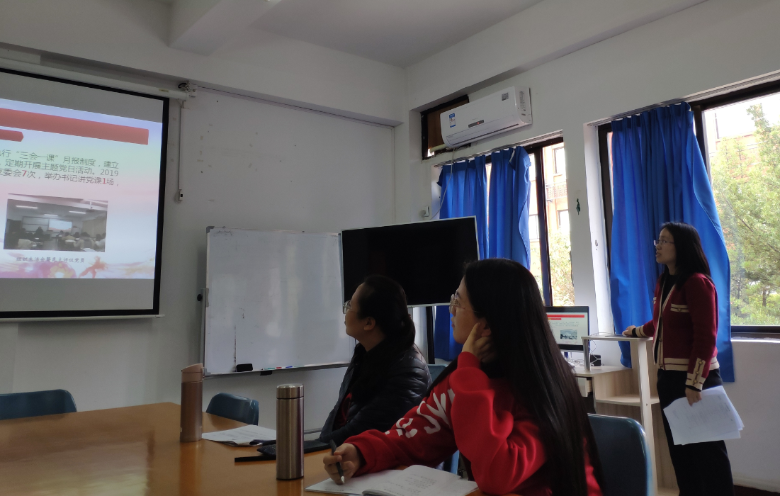 支部书记进行述职 会上,5个基层党支部书记围绕学习贯彻习近平新时代中国特色社会主义思想,贯彻落实校党委关于高校党建工作的部署要求进行述职,重点从开展“不忘初心、牢记使命”主题教育情况、党建工作开展情况、以创新精神推进基层党建工作的情况、宣传和思想政治工作情况等方面,集中展示一年来基层党建工作的成果,查找问题及其原因,提出下一步改进工作的思路和措施。