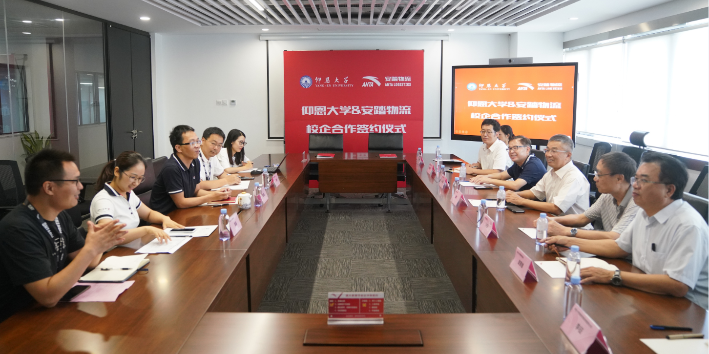 合影 签约仪式前,在安踏物流信息科技有限公司行政管理部经理唐丹虹的带领下,校长康龙一行7人参观了公司的主要仓库和分拣中心,详细了解安踏物流的发展现状。(杜心田/文 ac米兰官方网站/图)