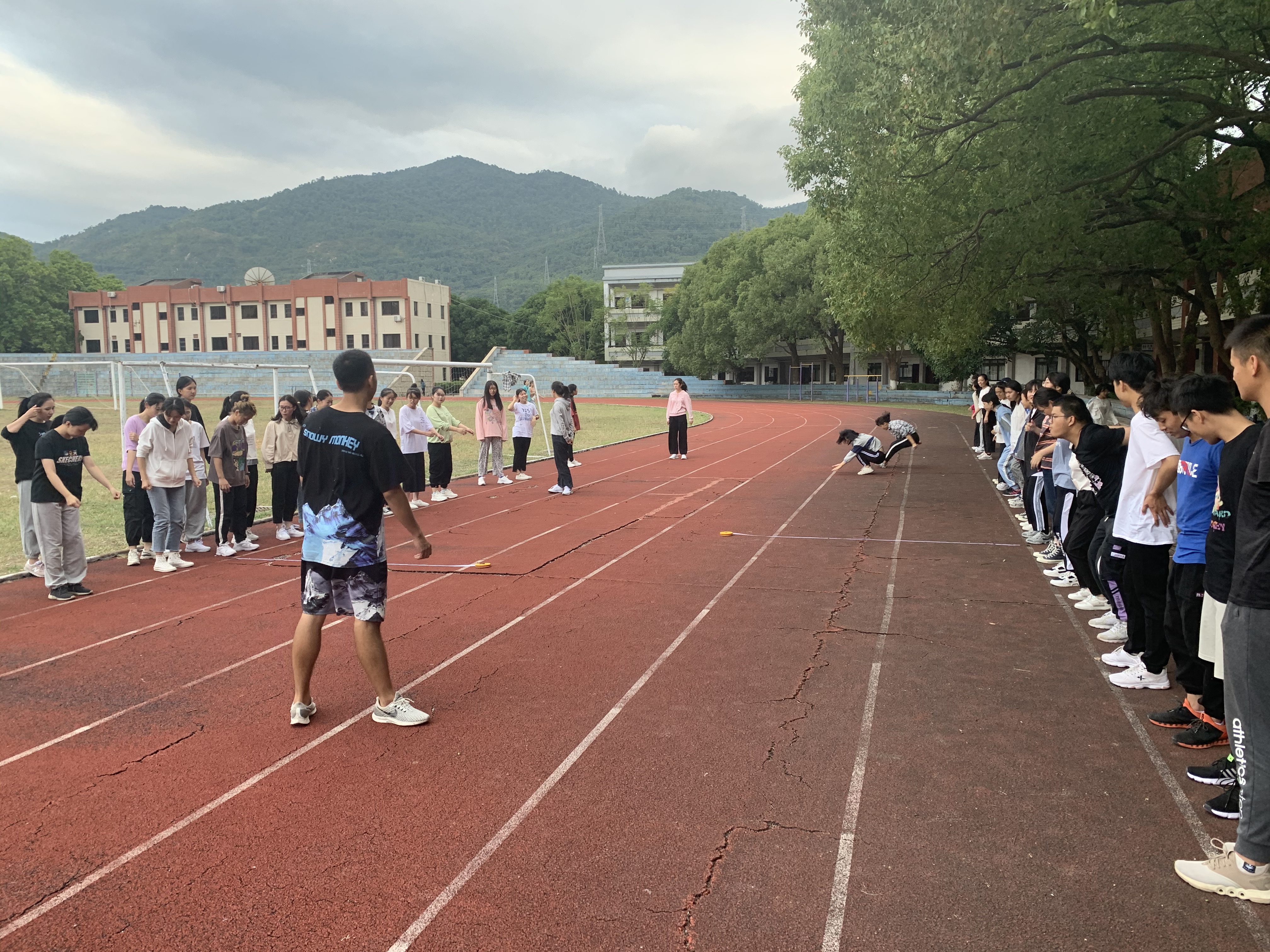 肺活量测试 活动开始前,许惠铭作动员讲话,他指出,生命在于运动,健康离不开运动,拥有了健康的体魄才能更好的拥抱幸福的人生,他希望通过此次活动,能够让更多的学生认识到运动的重要性,更加积极地投身于运动中,也希望能通过此次机会帮助学生更好地提高体测成绩。活动过程中,辅导员徐鸿飞和退伍复学学生通过讲解立定跳远、仰卧起坐等技巧,帮助学生更好地完成动作,而后更是带领着学生一起进行长跑,同学们之间相互指导,互帮互助,形成了一种和谐友好的氛围。