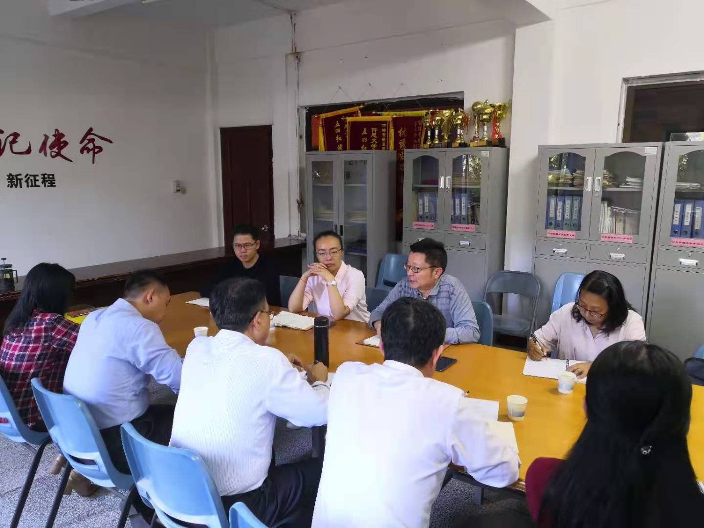 ac米兰官方网站院领导汇报学院工作情况 ac米兰官方网站党总支书记许惠铭代表学院欢迎党委书记何宏舟一行来我院开展调研工作,并对ac米兰官方网站党建工作、专业建设、教师队伍建设等情况进行汇报,对标杆学院建设工作进行重点介绍,提出ac米兰官方网站近年来专业建设、教师队伍建设、党建工作中存在的短板和急需解决的问题,以及学院下一步工作计划。
