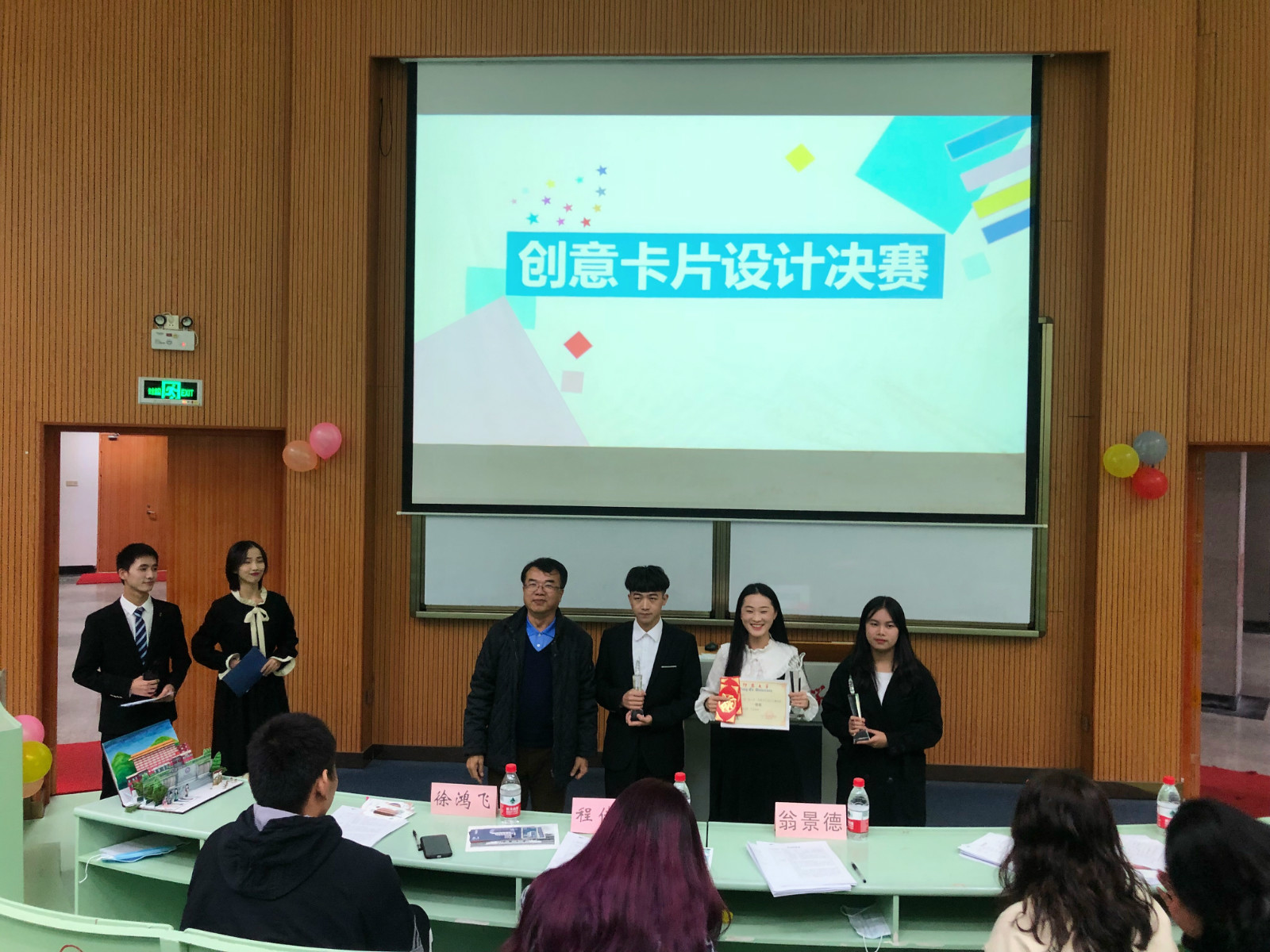 经过初赛评审,共有12组作品进入决赛,参赛作品分为手绘组、平面设计组、工艺组三大组,比赛通过以卡片为载体的活动对象,设计出具有创新性、创意性的仰恩特色设计作品。比赛现场,参赛选手在规定的时间内围绕主题,结合PPT、视频或实物展示等形式,对作品展开了详细讲解,阐述了作品的主要设计、设计思路及作品寓意。将自己的设计成果直观地呈现在观众与评委的面前。参赛选手们以其独特的创意、精美的设计获得了评委与观众们的认可。经过激烈的角逐,队伍“比奇堡沙滩”“梦队”“恩记队”荣获一等奖,“一人就是一队”“没名字队”“Top girl”荣获二等奖,“Sodagreen”“贫民窟艺术家”“Young”荣获三等奖。