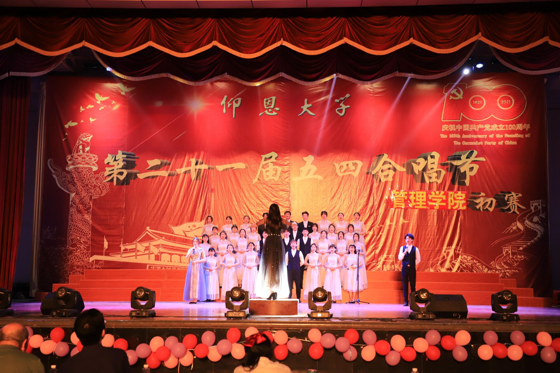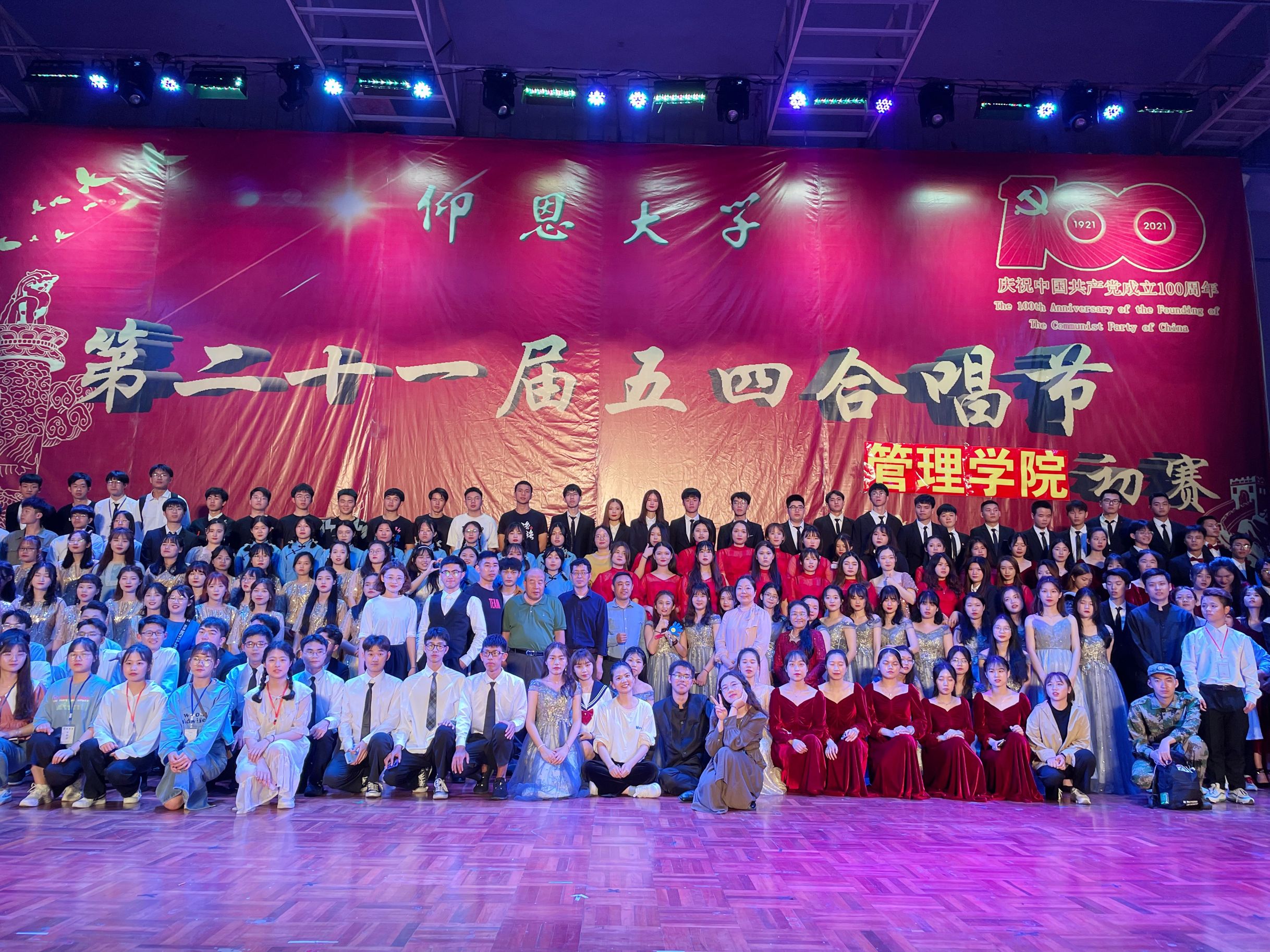 集体大合照 本次五四合唱节,切合“青春歌颂新时代,献礼建党一百年”的举办主题,展示了我院学生朝气蓬勃、奋发向上的精神风貌,同时为建党一百年提前献礼青春之声,祝愿祖国繁荣昌盛,人民生活幸福美满。(林晶晶/文 蚁泽禹、林紫容、邱何坤/图 审核:李育瑜)