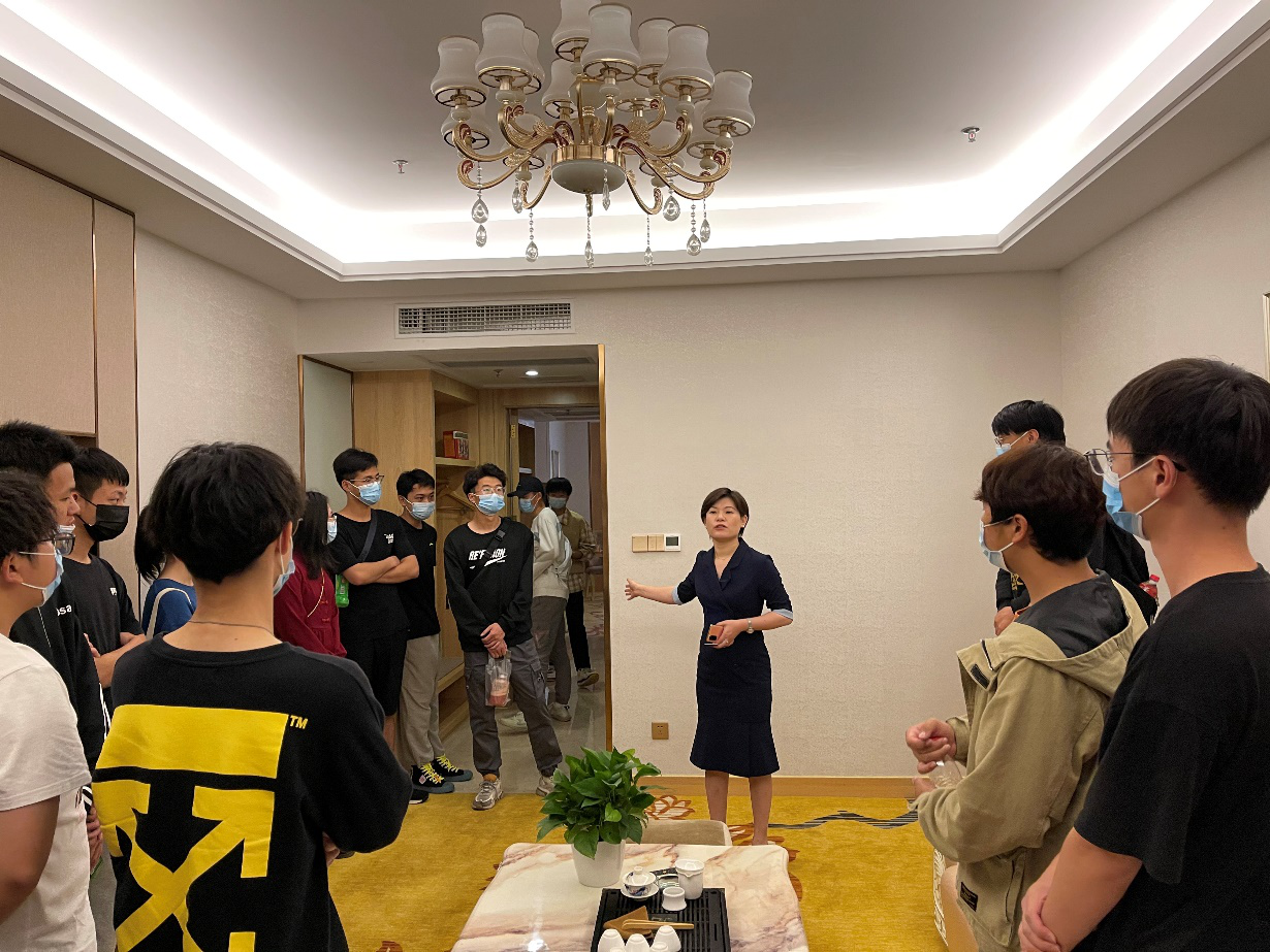 4月28日,为了加强学生对专业的认识与了解,工商管理专业2020级全体学生在蒋志丹、吴威豪两位教师的带领下赴晋江维也纳国际酒店开展专业认知实习。