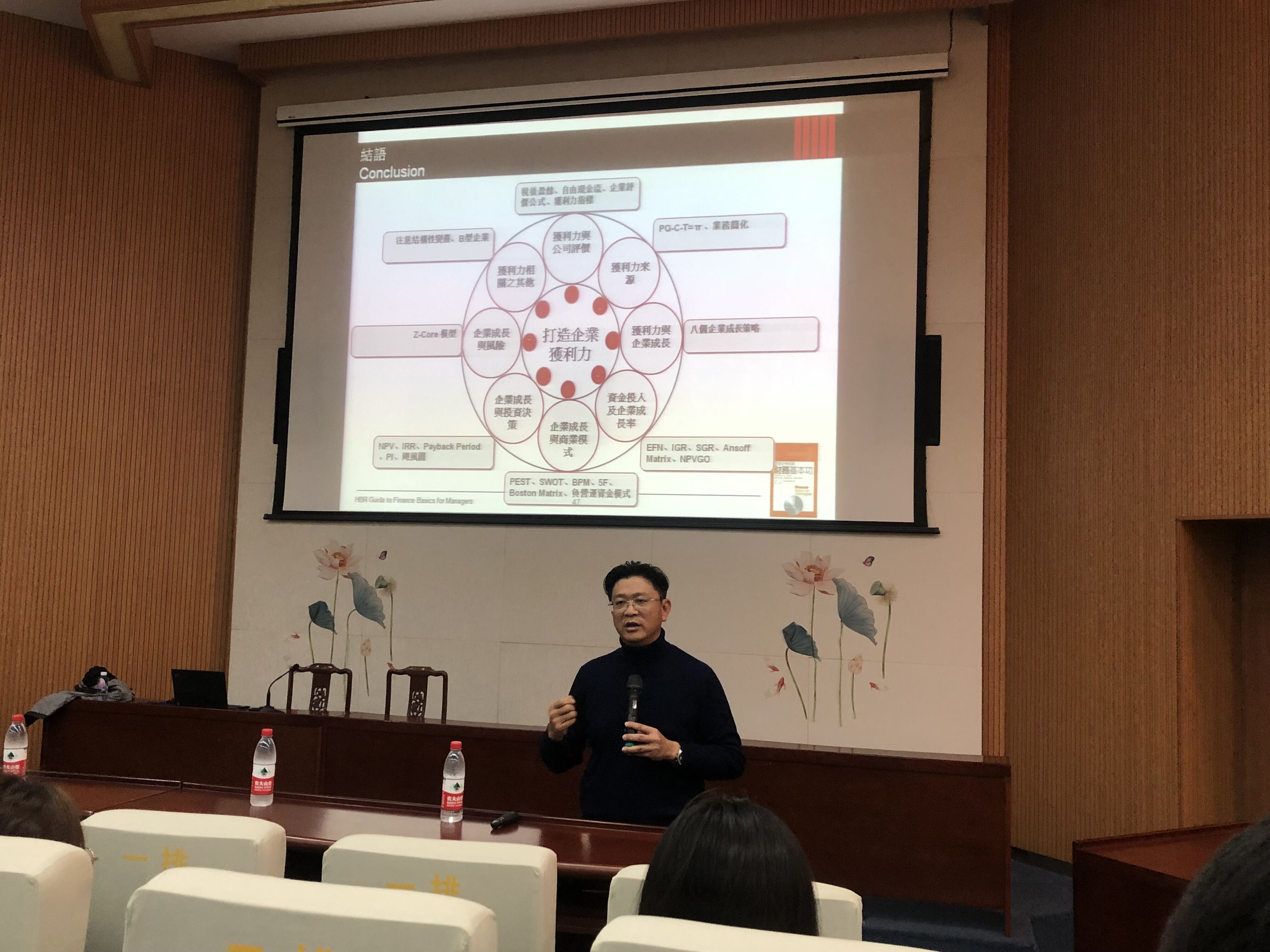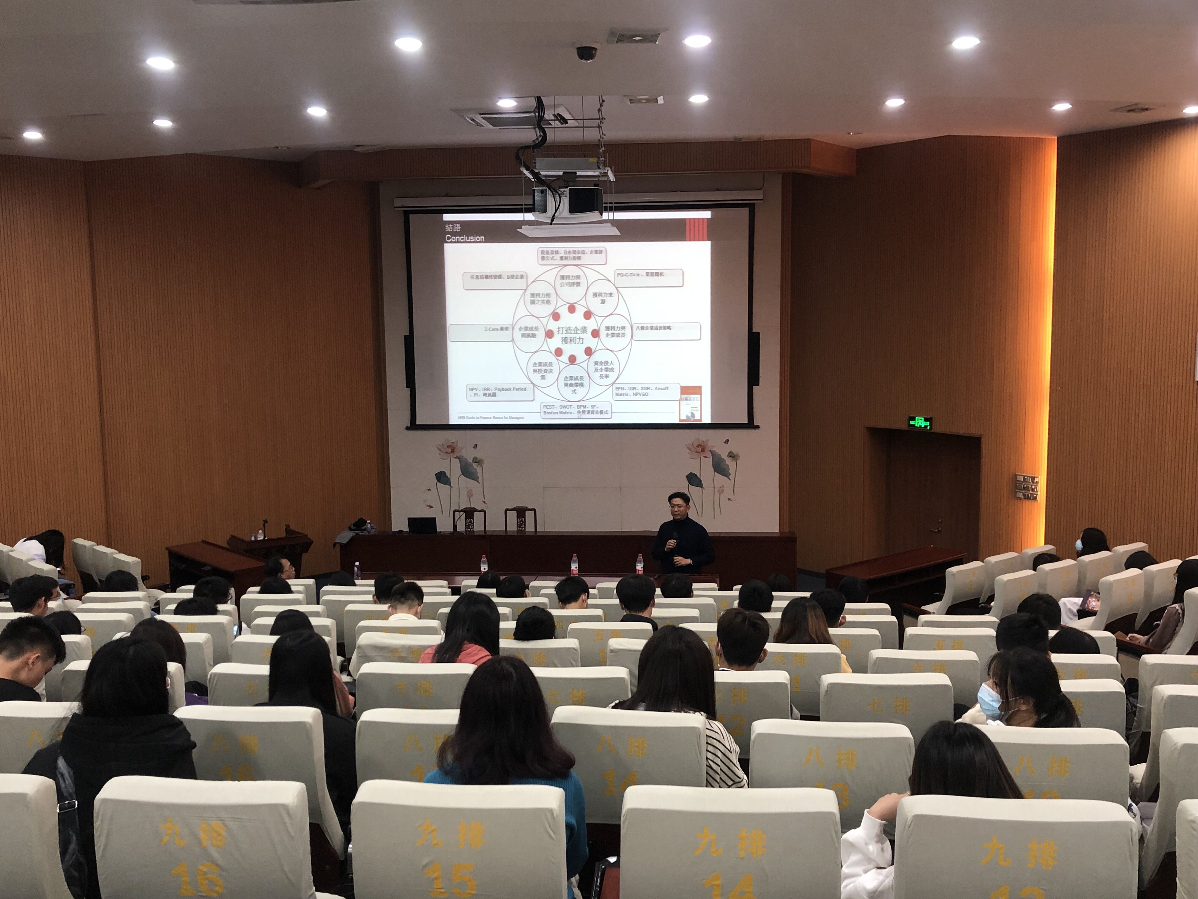 讲座现场 讲座上,林霖教授结合自身丰厚的战略管理、财务管理和企业实践经验,在客观分析当前我国企业发展现状的基础上,从八大模块深入浅出地阐述企业的获利方法;通过对企业盈利能力的分析,阐述企业目前的盈利能力和导致目前盈利状况的原因,引导大家分析如何打造企业未来的盈利能力。