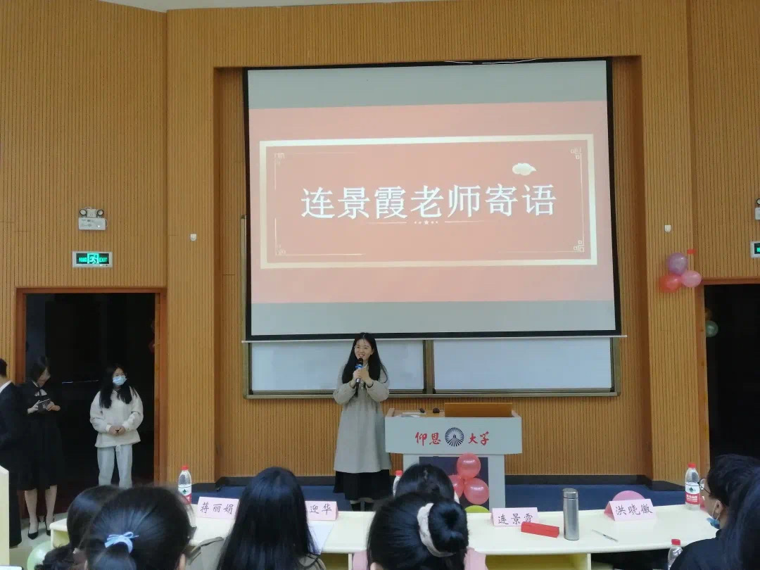 老师寄语 同时,精彩纷呈的表演节目也使得全场热情高涨,掌声不断。之后,表现突出的学姐们也向同学们分享了自身的经验。与此同时,主持人带领大家进行了激烈紧张的游戏环节,并将礼物作为奖品送给游戏获胜的同学。最后,连景霞老师对本次表彰大会暨新生大会进行了总结,并希望我系学子能够继续努力,提升自己,台下的同学们纷纷表示受益匪浅。
