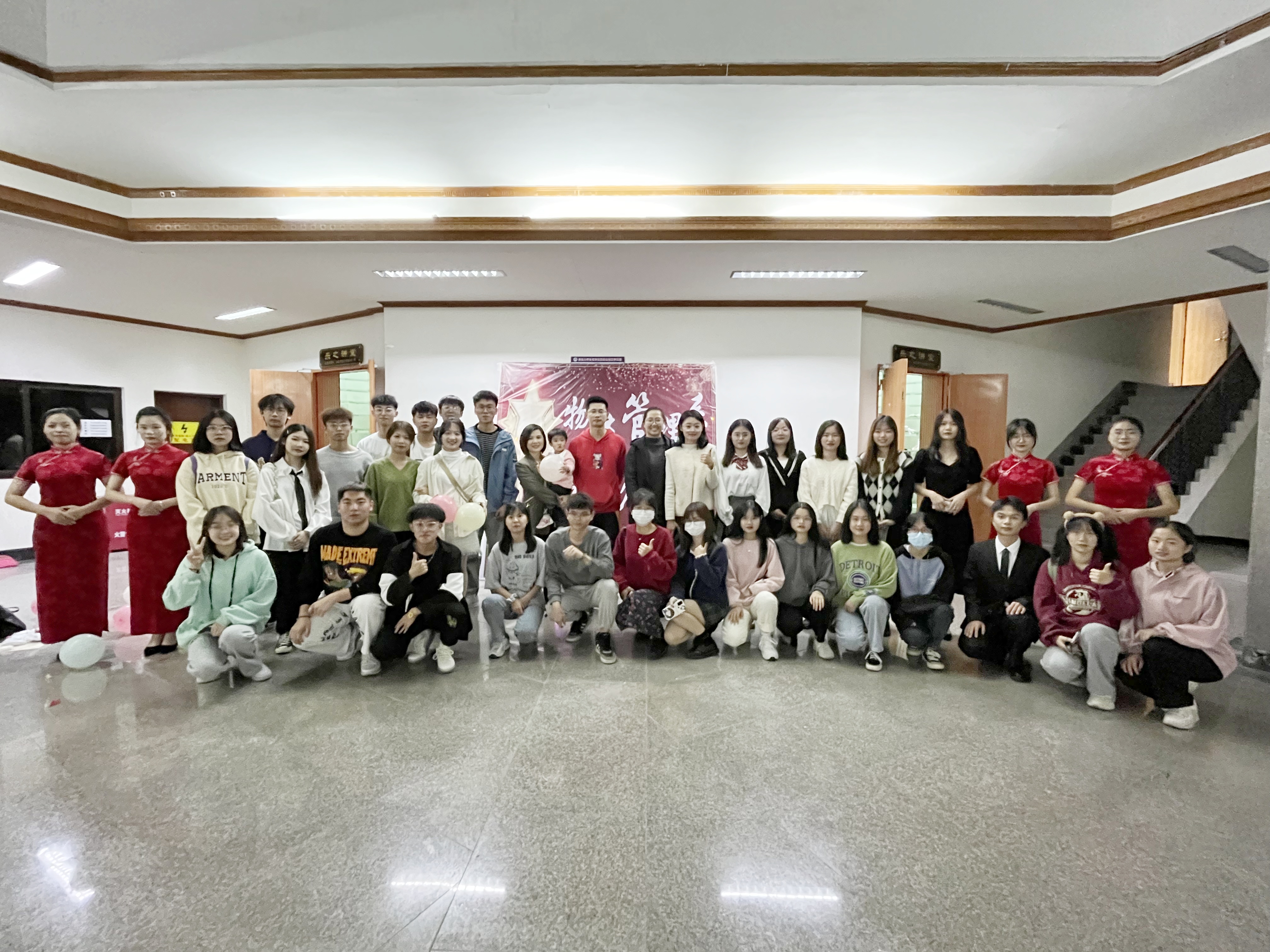 集体合照 会后,曾上洪老师发表致辞,总结一学期以来取得的优异成绩,鼓舞同学们继续保持良好作风,向优秀看齐,向典型看起,在今后的学习工作中继续保持物流管理系奋发向上,永不服输的精神。