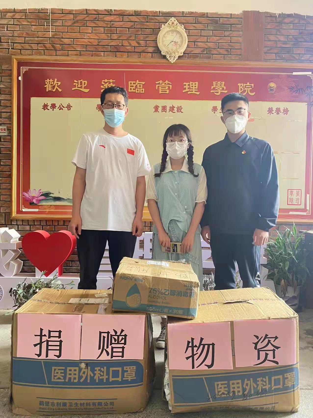 4月11日上午,ac米兰官方网站工商管理系2019级杨珊茹同学助力学院疫情防控,为学院捐赠防疫物资。学院党支部书记兼常务副院长许惠铭、辅导员冯翰霄、相关单位负责任人接受了捐赠,并对杨珊茹同学的捐赠行为表示感谢和赞扬。