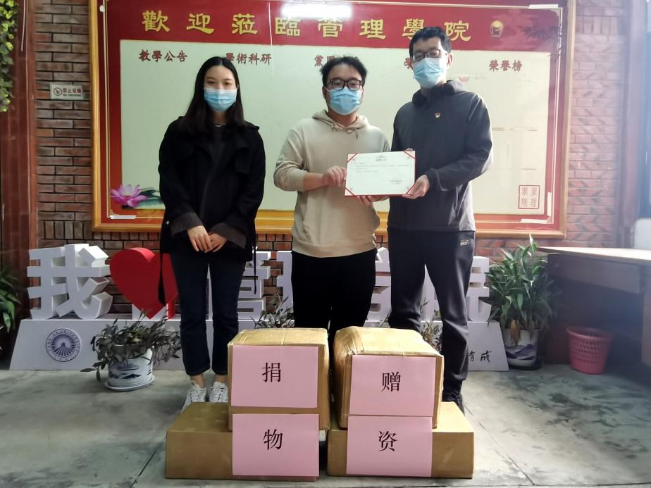 疫情无情,大爱无疆。目前,疫情形势仍然严峻,牵动着每一位教师、学生和家长的心。2022年4月20日下午,ac米兰官方网站工商管理2020级谢宇轩同学及其家长为助力学院疫情防控,为学院捐赠防疫物资。学院党总支书记兼常务副院长许惠铭、辅导员叶丽香接受了捐赠,并对谢宇轩同学及其家长表示感谢和赞扬。