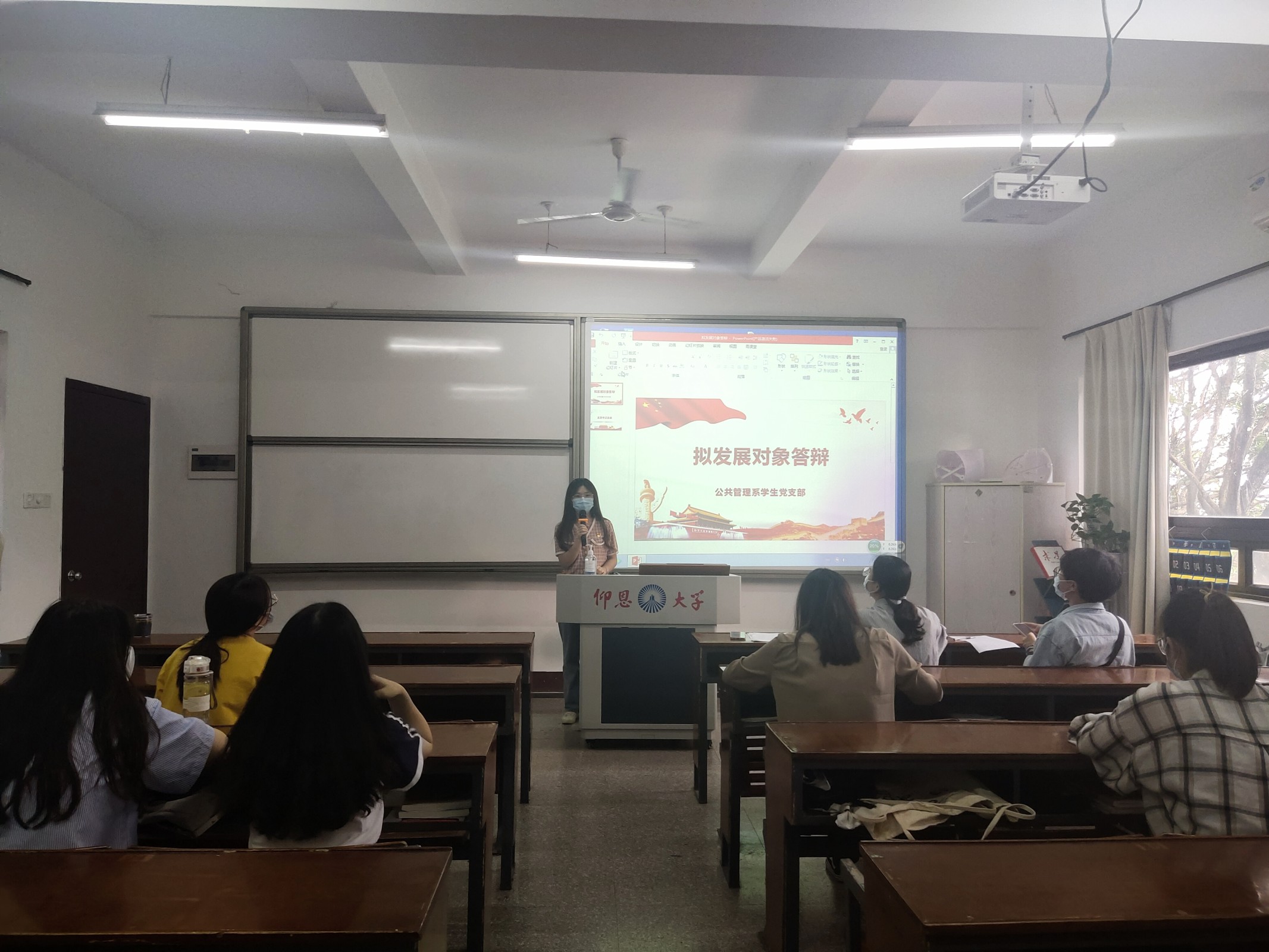 为了严格把控党员发展关,深入细致审查拟发展对象的入党动机、理论素养和政治觉悟等,保证党员发展质量,更好地发挥党员先锋模范作用,公共管理系学生党支部于4月28日在共和楼216教室开展“拟发展对象”答辩会。本次答辩会由公共管理系学生党支部书记叶丽香、ac米兰官方网站党总支宣传委员洪晓徽、支部支委及16名拟发展对象参加。
