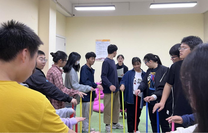 在培训会上,柯嘉雯老师就心理委员职责展开讲述,她简述作为团辅领导者该如何参考选择团辅游戏,并讲解游戏之间的逻辑性以及活动设计的目的。随后,便带领心理委员们体验了“大风吹小风吹”、“不倒森林”、“团体沙盘”“口香糖、黏什么”四个经典的团辅活动,在体验的过程中讲解作为团辅领导者该如何表达、如何调动同学们参与团辅的积极性等问题。最后,柯嘉雯老师对心理委员关于团辅活动的疑问一一进行了解答。