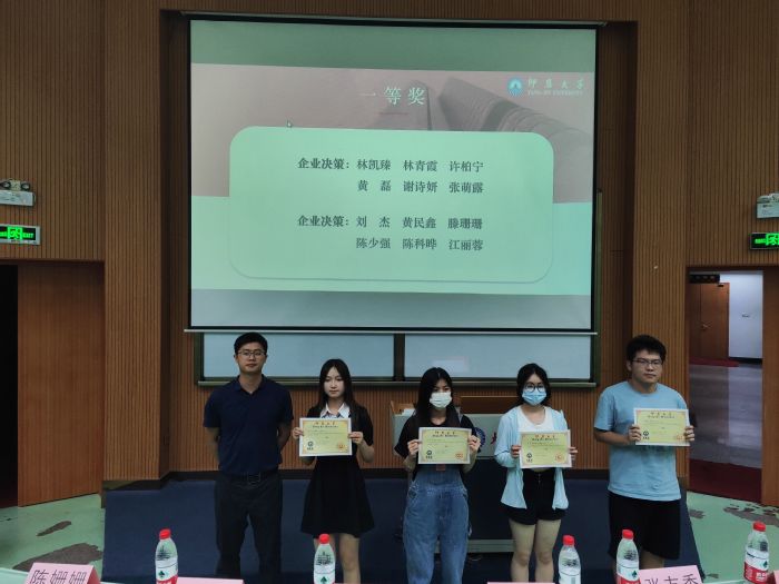 5月29日晚上,全国企业竞争模拟大赛ac米兰官方网站校内选拔赛颁奖仪式在旧区和昌楼乐之讲堂进行,张友香副教授、曾勇惠老师对校内选拔赛一等奖、二等奖、三等奖的小组进行了颁奖。