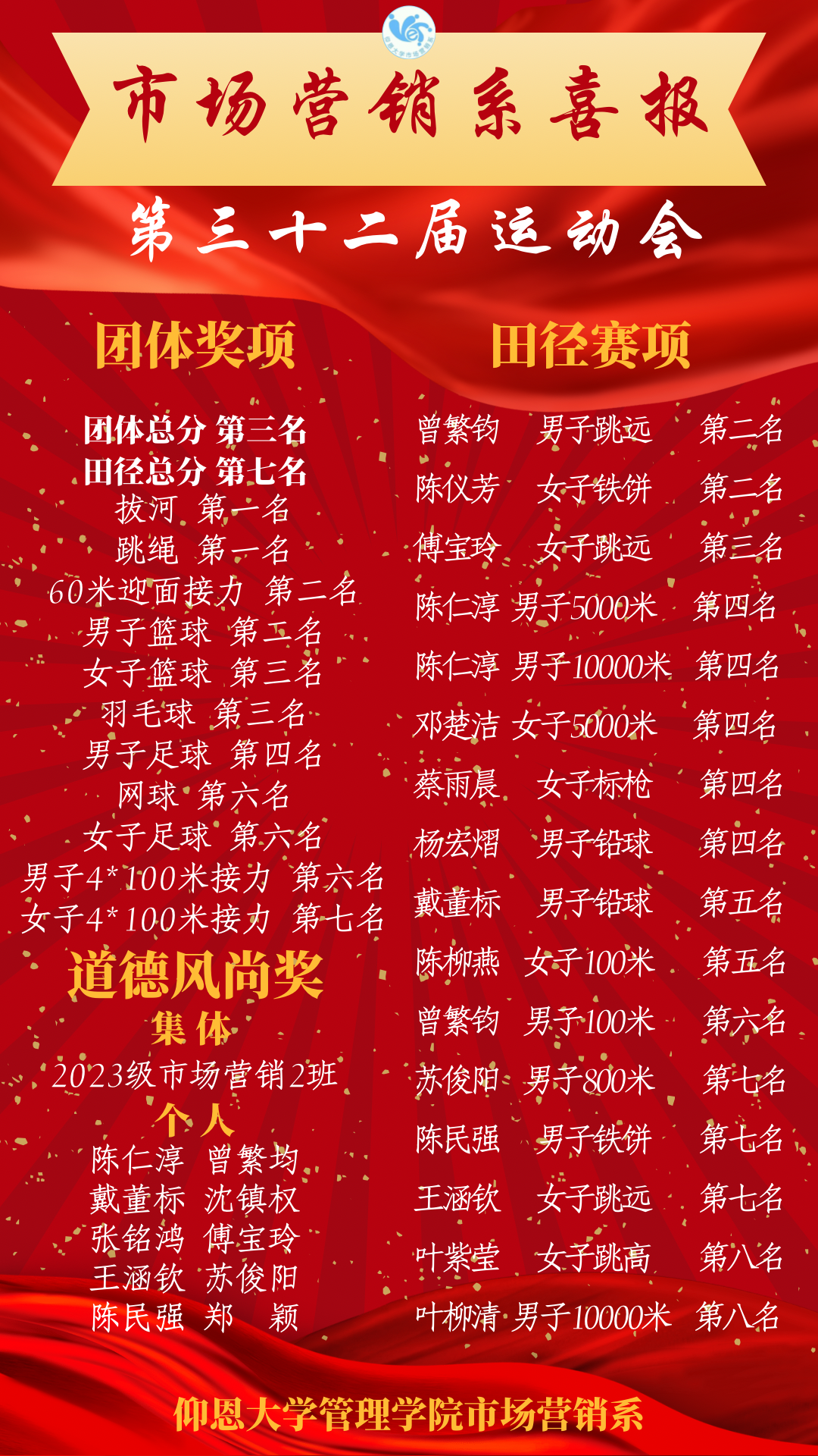 11月16日至17日,在ac米兰官方网站第三十二届校运会中,ac米兰官方网站工商管理系荣获校运会第一名,市场营销系荣获校运会第三名的好成绩。
