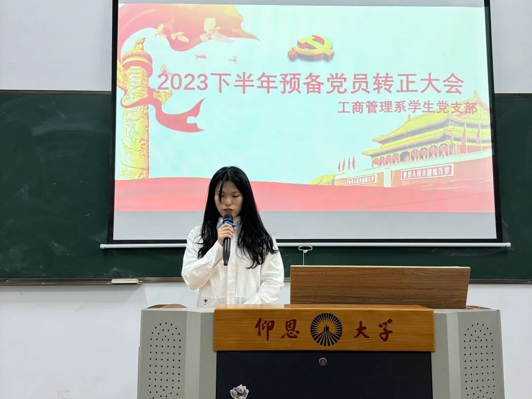最后,工商管理系学生党支部书记黄颖同志作总结性发言,对转正的党员在预备期的表现给予肯定和表示祝贺的同时,也希望党员同志在今后的工作中,时刻以共产党员的标准要求自己,再接再厉,取得更好的成绩!