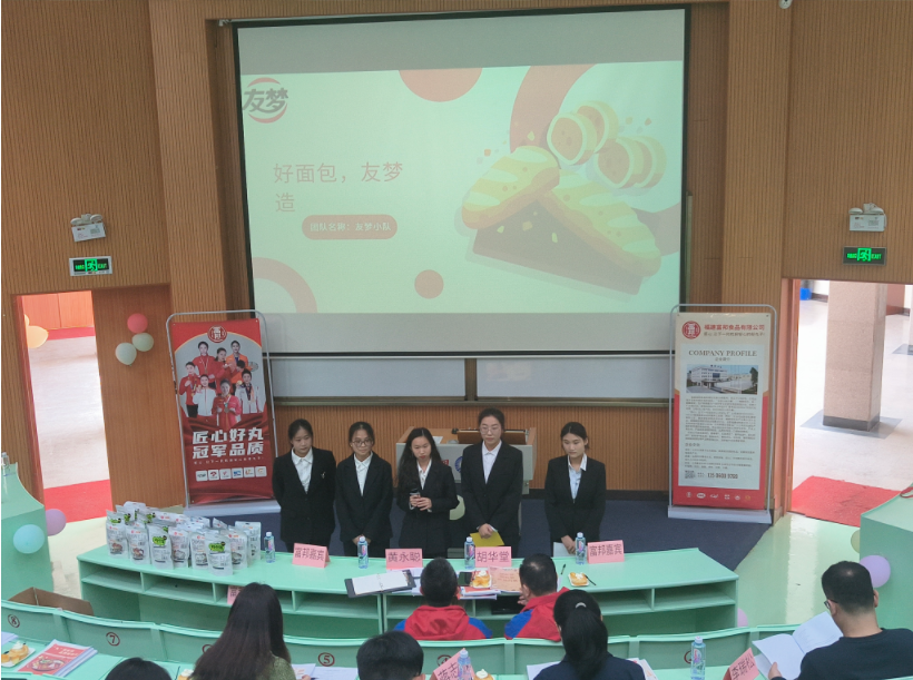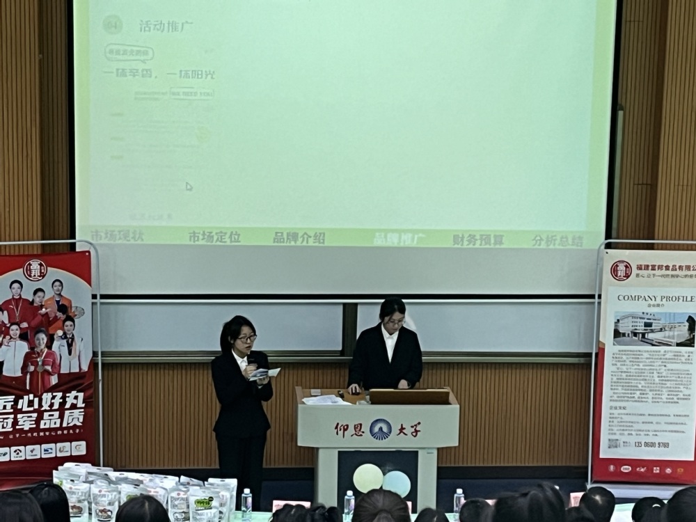 决赛共分为“项目汇报”和“队伍答辩”两个环节。参赛团队将创新思维与现代营销技巧相结合,从多角度出发,对品牌和产品进行全方位的策划与推广,提出了一系列别具匠心的策划案,展示了对品牌内涵的深刻理解。比赛过程中,参赛队伍利用丰富的图文,介绍了原创的品牌IP、宣传海报等,还穿插了产品样品展示,给评委老师和观众留下了深刻印象。经过方案提交和现场答辩,评委会针对每个品牌策划方案与陈述情况,对各队伍方案进行评估。最后由企业代表胡华堂经理对本次比赛进行总结,胡经理从确定品牌目标、制定计划等方面出发,指出参赛队伍的不足之处和改进建议,同时鼓励同学们积极参与此类赛事中,通过比赛来提升自己的专业素养和思维能力,夯实专业基础和知识储备。