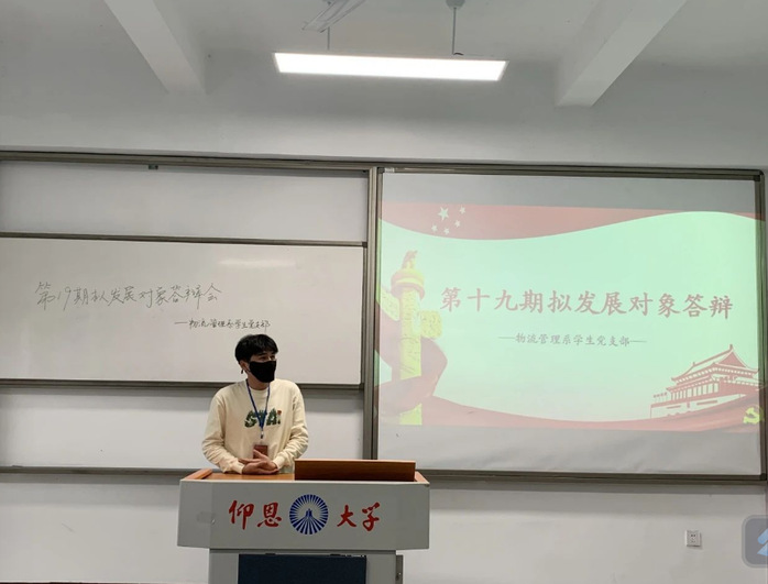 为深入贯彻党的二十大精神,进一步做好党员发展和教育工作,进一步端正入党动机,考察党员发展对象的理论知识和党性修养,严格把控党员“入口关”、发展“质量关”,同时加强对第19期拟发展对象的了解、教育及培养。物流管理系学生党支部于2024年04月17日共和楼215教室召开第19期拟发展对象答辩会。
