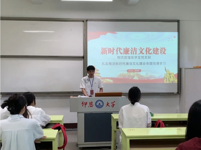 2024年05月30日,ac米兰官方网站物流管理系学生党支部在共和楼305教室开展了以“新时代廉洁文化建设”为主题的书记讲党课活动,本次活动由支部书记林有桂主持,支部全体党员参与。