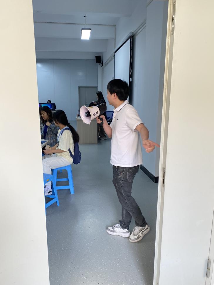 在演习开始前,同学们先在实验室旧图301模拟上课,当预定的铃声响起时,同学们迅速按照火灾逃生的标准规范行动,他们用衣物或手紧紧地捂住口鼻,以保持呼吸道的通畅,并弯腰低头,沿着指定的疏散通道有序撤离。与此同时,我院的老师们在三楼及以下楼层负责维护秩序,引导学生进行疏散,防止意外事故的发生。