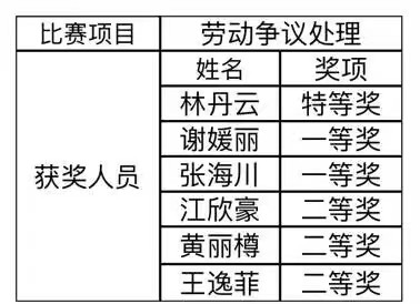 经过激烈角逐,实务设计、数字HR赛道共6支队伍获奖;案例分析赛道共谢诗妍、江欣豪等13位同学获奖;劳动争议处理赛道共林丹云、谢媛丽等6位同学获奖;职场实战赛道共何佳欢、范灵璇等12位同学获奖;无领导小组讨论共李琳、杨子怡、张倩等15位同学获奖。