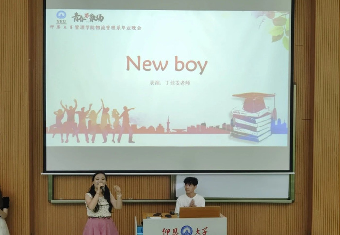 辅导员丁佳雯老师一首充满活力的《New boy》带动了全场的热情,她通过歌声鼓励同学们在未来的道路上要战胜恐惧,对未来不再迷茫,同时也祝愿即将毕业的同学们能够怀揣热爱,奔赴山海,披荆斩棘,勇往直前。