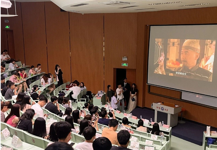 由物流管理系团学干部带来的配音秀《甄嬛传之论文风波》笑点满满。经过改编,台词更加贴近同学们的日常,搭配表演者们有趣的方言演绎更加让人忍俊不禁,每一句台词都出人意料,现场充满了欢乐的笑声。
