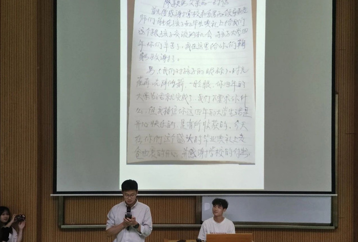 物流管理系团学提前征集了家长们想对孩子说的话,或是视频录像或是手写信,将它们通过本次晚会展现在孩子们的面前。我们还邀请了陈绍炯老师和李征老师帮我们朗读两封来自同学家长的手写信。
