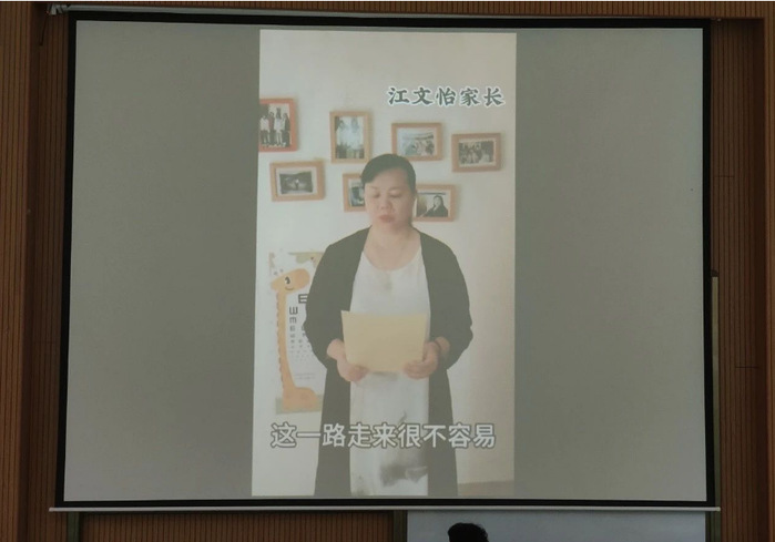 看着家长们录制的视频,听着他们温暖的、殷切的话语,整个晚会都陷入了感动的氛围,每一个人都被深深打动。有的人落下了泪水,每一滴悄然滑落的泪水都带着一份深深的思念。