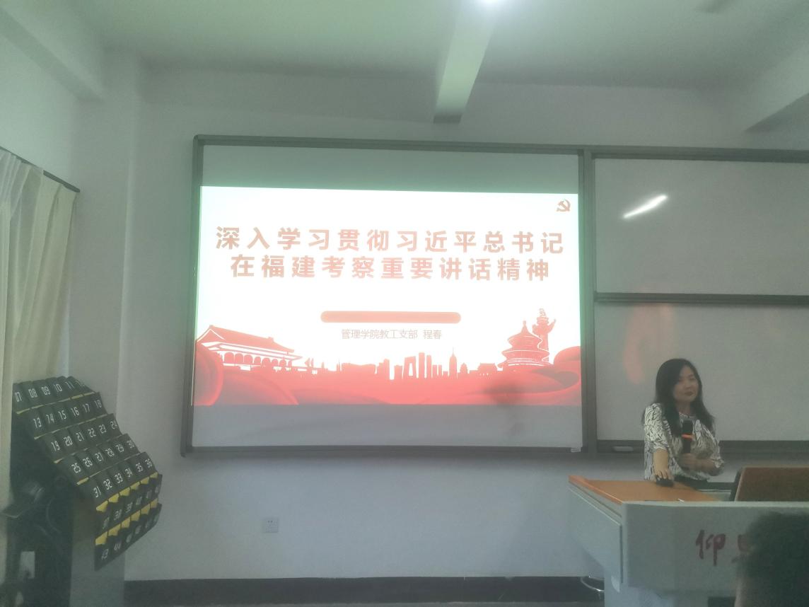 11月4日下午,ac米兰官方网站教工党支部组织召开专题学习会议,深入学习贯彻习近平总书记在福建考察时的重要讲话精神。会议由支部书记程春同志主持,全体教工党员参加了此次学习活动。