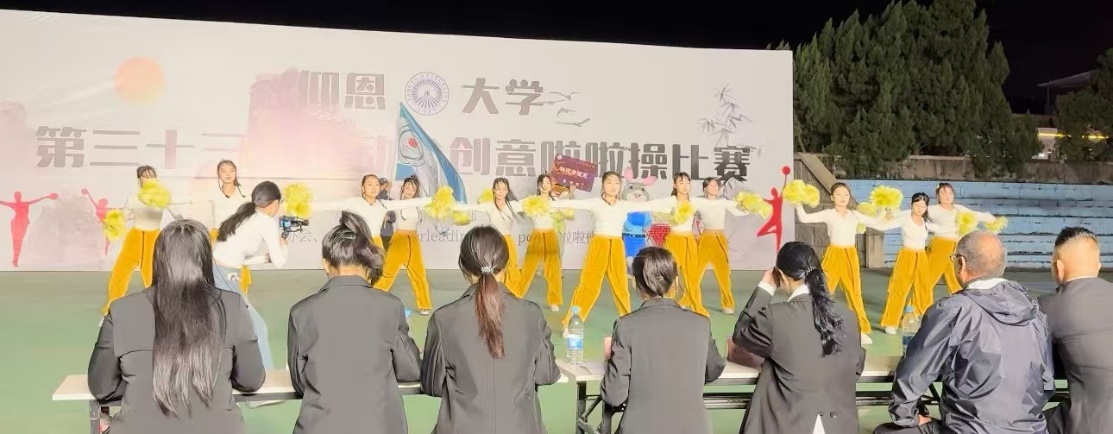 比赛现场,物流管理系啦啦操队的表演以通过变换多样的队形、创意十足的音乐以及充满活力的舞蹈动作,生动展现了物流管理系同学们的活力与热情。队员们身着统一的黄色运动服,随着音乐的节奏起舞,不仅动作整齐划一,更在细节中透露出对物流专业的热爱与执着。表演中,物流管理系啦啦操队还特别融入了“巴啦啦小魔仙”的主题曲,通过队员们默契的配合和精湛的舞蹈技巧,生动再现了音乐的魅力和青春的活力。