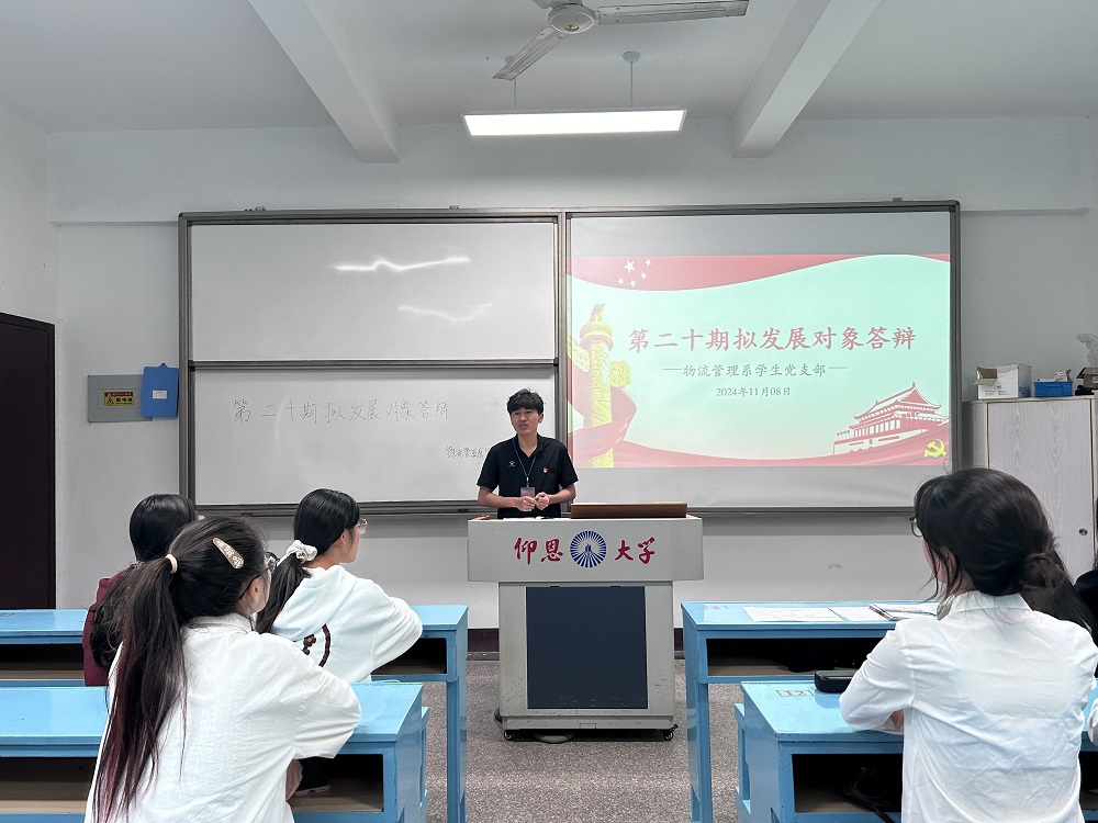 为了更好贯彻党的二十大精神,进一步培养和建设高素质、有担当、能奉献的党员队伍,保持党员队伍的先进性和纯洁性。2024年11月8日下午16点,物流管理系学生党支部于共和楼208开展第20期拟发展对象答辩会。本次活动由支部书记林有桂老师主持,支部教师党员丁佳雯老师、蔡婷婷老师列席,部分党员及入党积极分子参加。