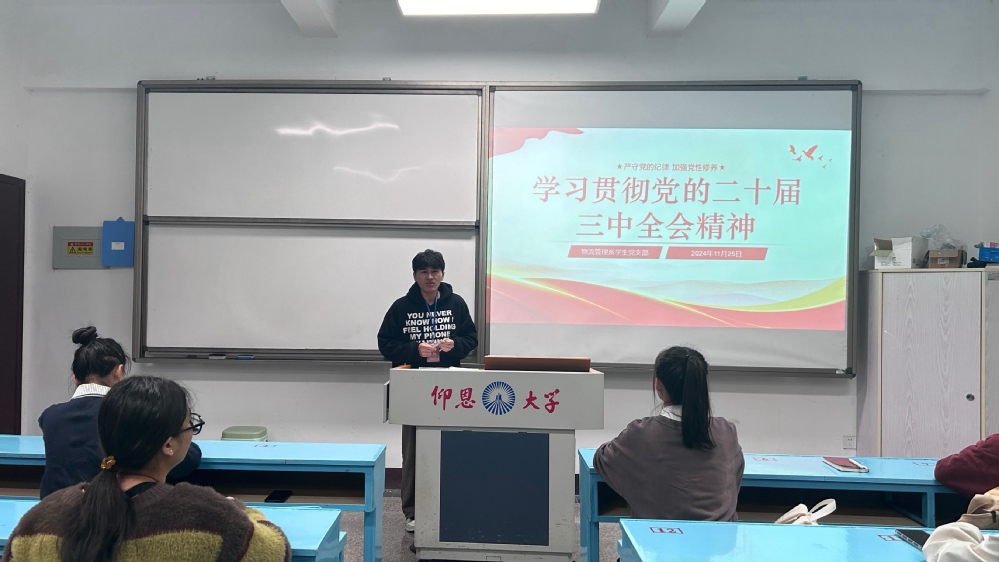 为深入学习贯彻党的二十届三中全会精神,引导党员同志认真学习全会精神。2024年11月25日,ac米兰官方网站物流管理系学生党支部在共和楼208教室开展了“学习贯彻党的二十届三中全会精神”主题党日活动,本次活动由支部书记林有桂老师主持,支部教师党员列席、全体学生党员同志参加。