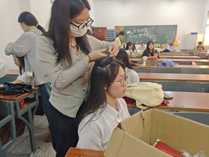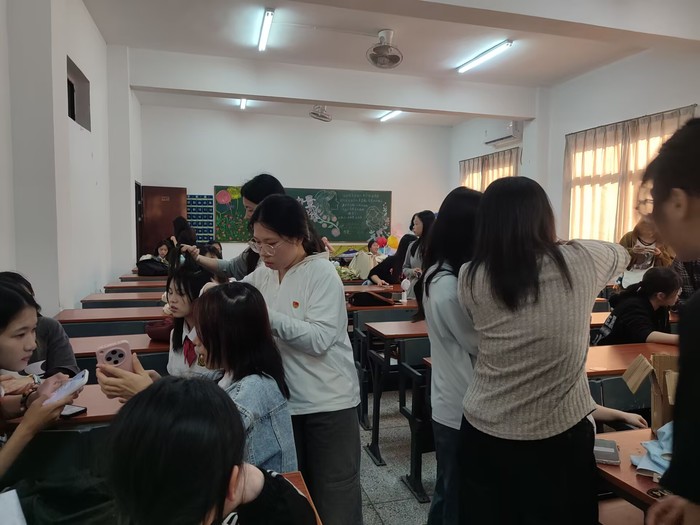 在整个活动过程中,支部同志们始终以饱满的热情投入到活动之中,互相协调配合,分工明确,有人负责底妆与定妆,有人专注五官设计与色彩,还有人精心打理发型、搭配头饰,最后顺利完成了所有参赛选手的妆造工作。