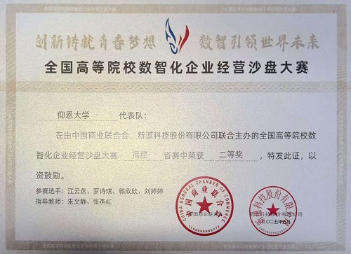近日,由福建理工大学承办的全国数智化沙盘模拟经营大赛福建省选拔赛圆满落幕,我院学子经过激烈角逐,在福州大学、集美大学、闽江学院、福建理工大学等19所福建本科院校的31支队伍、共计两百余名学生中脱颖而出,取得了本科组团队一等奖和二等奖的好成绩。