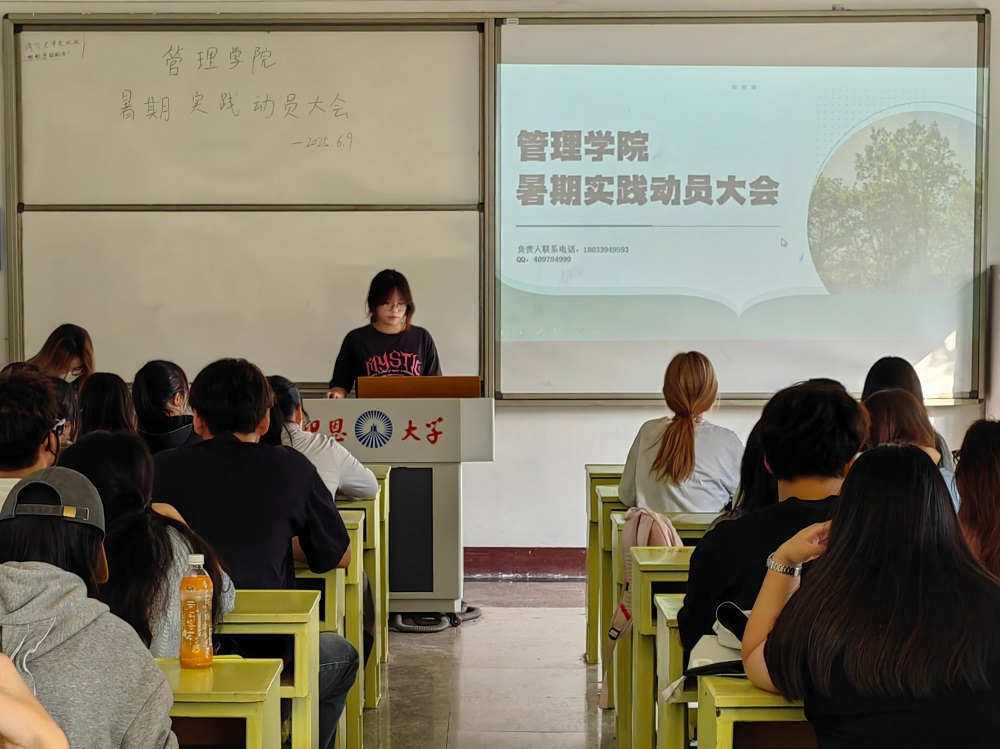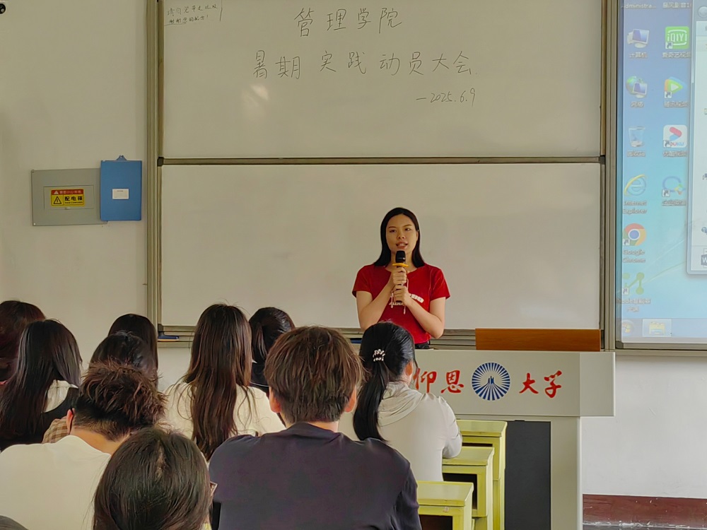 为激发管院学子参与暑期社会实践热情,深化理论知识应用,培养社会责任感。2025年6月9日下午16:30ac米兰官方网站团委于ac米兰官方网站第一教学区共和楼321教室召开暑期社会实践动员大会。本次会议由ac米兰官方网站团委实践部部长刘清滟主持,ac米兰官方网站团委书记叶丽香老师以及各班负责人参加本次会议。