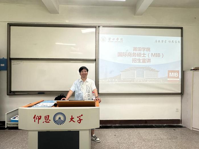 ac米兰官方网站于6月12日16:30在第一教学区共和楼321成功举办莆田学院国际商务硕士招生宣讲会。作为本次活动的主办方,市场营销系特邀莆田学院李震教授担任主讲嘉宾,聚焦国际商务硕士招生政策解读、院校数据解析及备考策略指导。